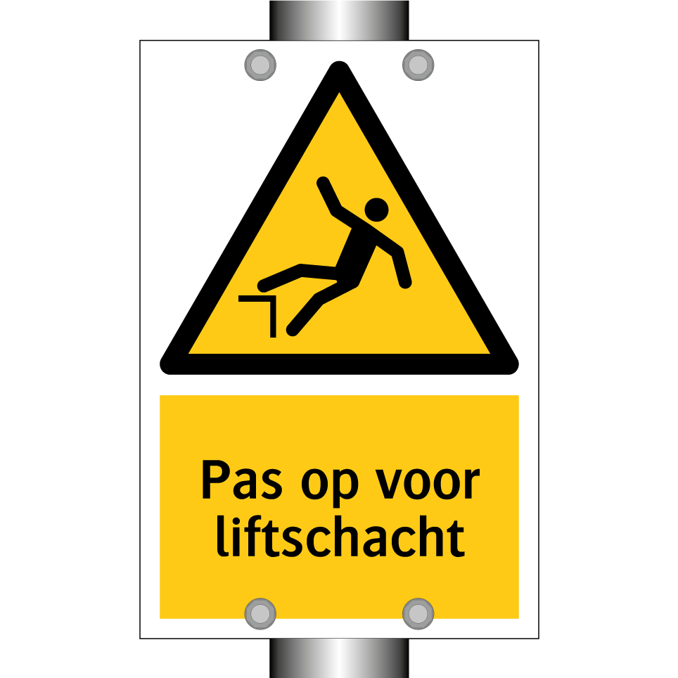 Waarschuwingsbord met de tekst Pas op voor liftschacht