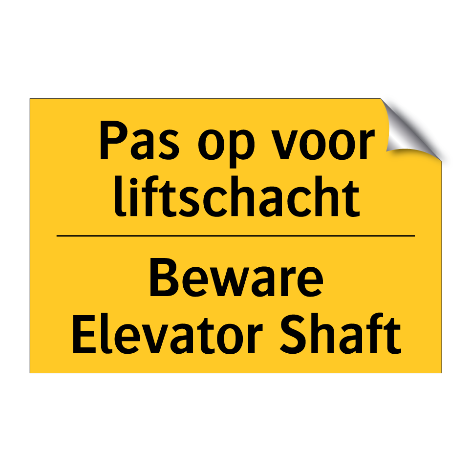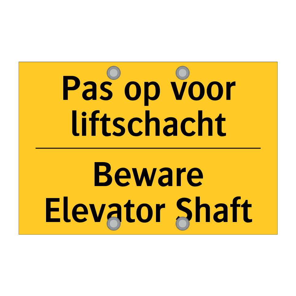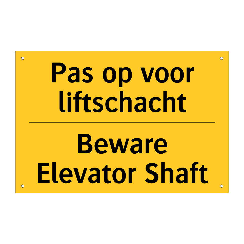 Waarschuwingsbord met de tekst Pas op voor liftschacht / Beware Elevator Shaft