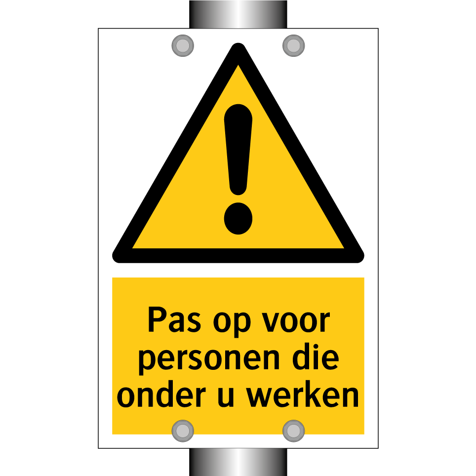 Waarschuwingsbord met de tekst Pas op voor personen die onder u werken