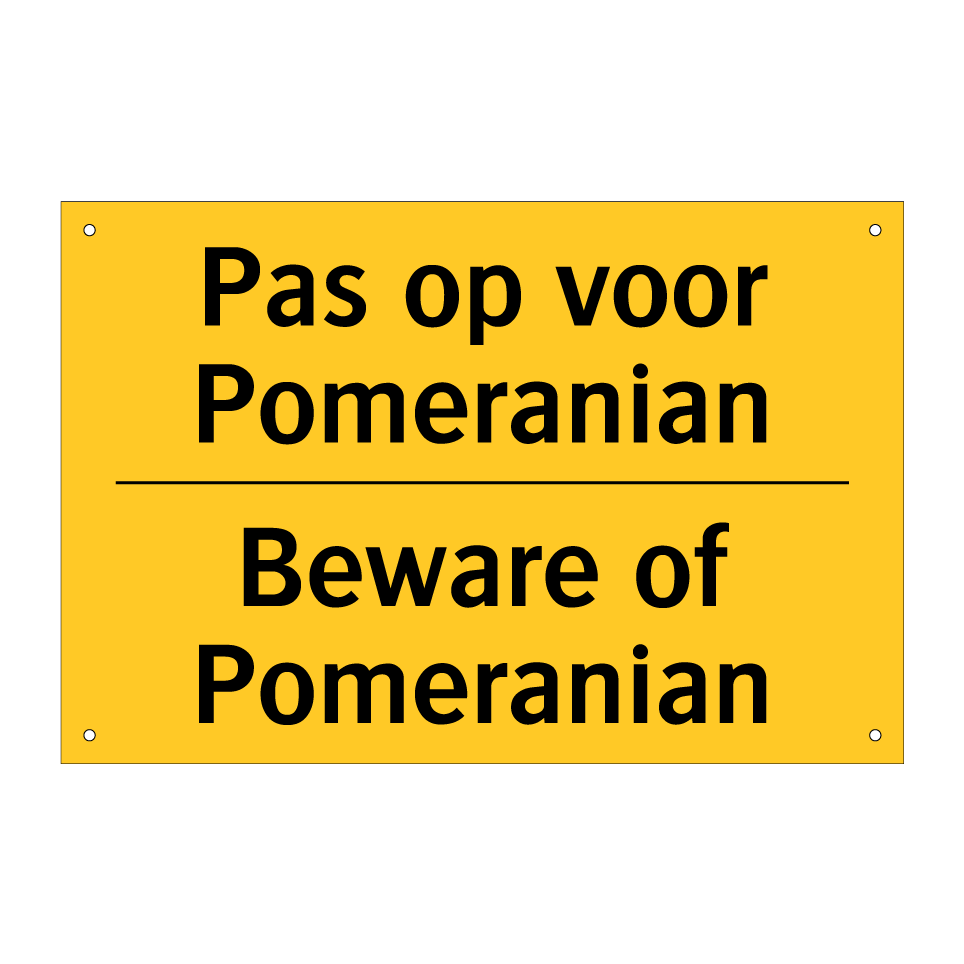 Waarschuwingsbord met de tekst Pas op voor Pomeranian / Beware of Pomeranian