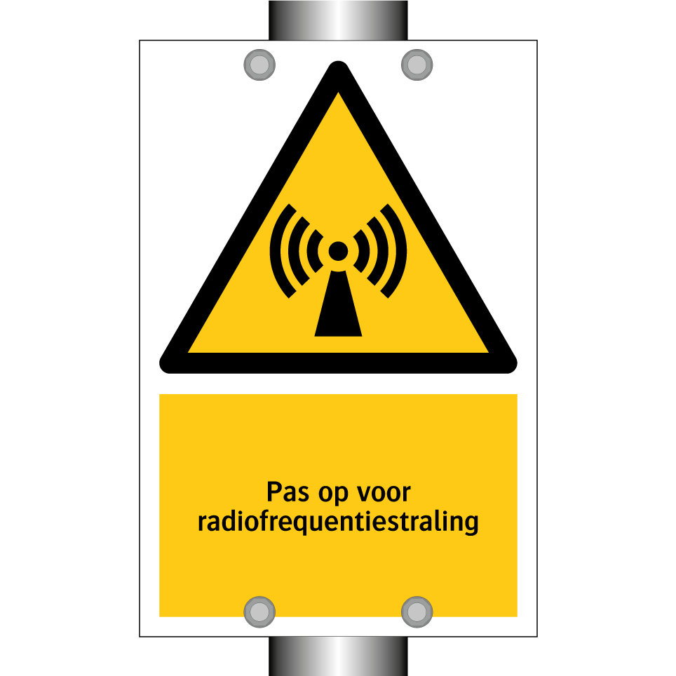 Waarschuwingsbord met de tekst Pas op voor radiofrequentiestraling