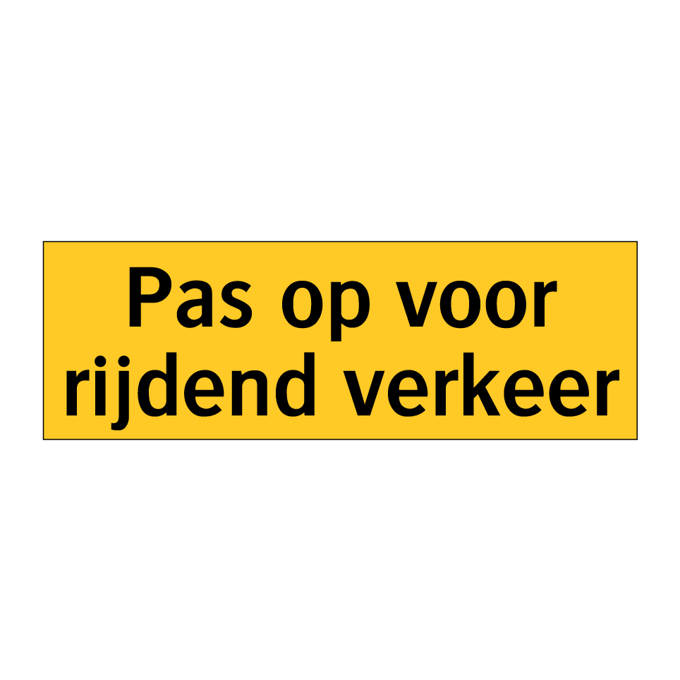 Waarschuwingsbord met de tekst Pas op voor rijdend verkeer