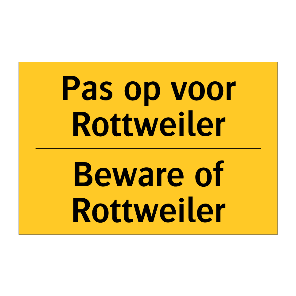 Waarschuwingsbord met de tekst Pas op voor Rottweiler / Beware of Rottweiler
