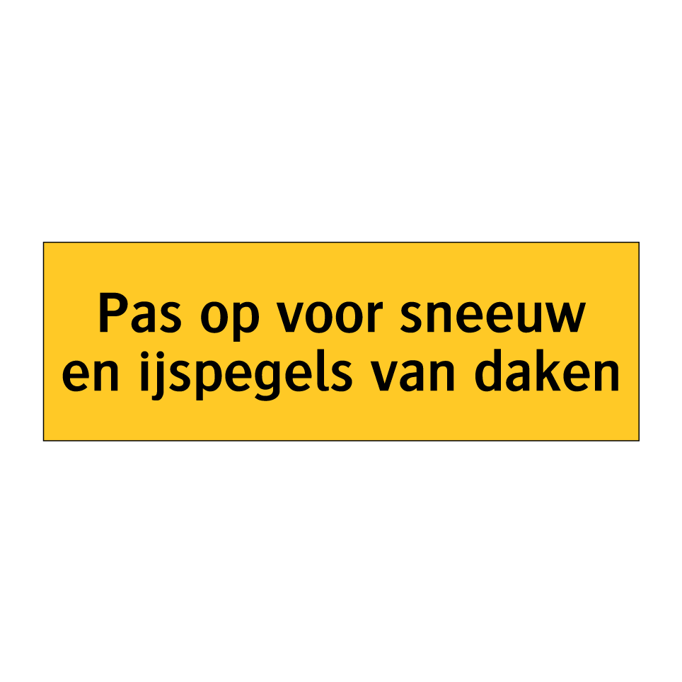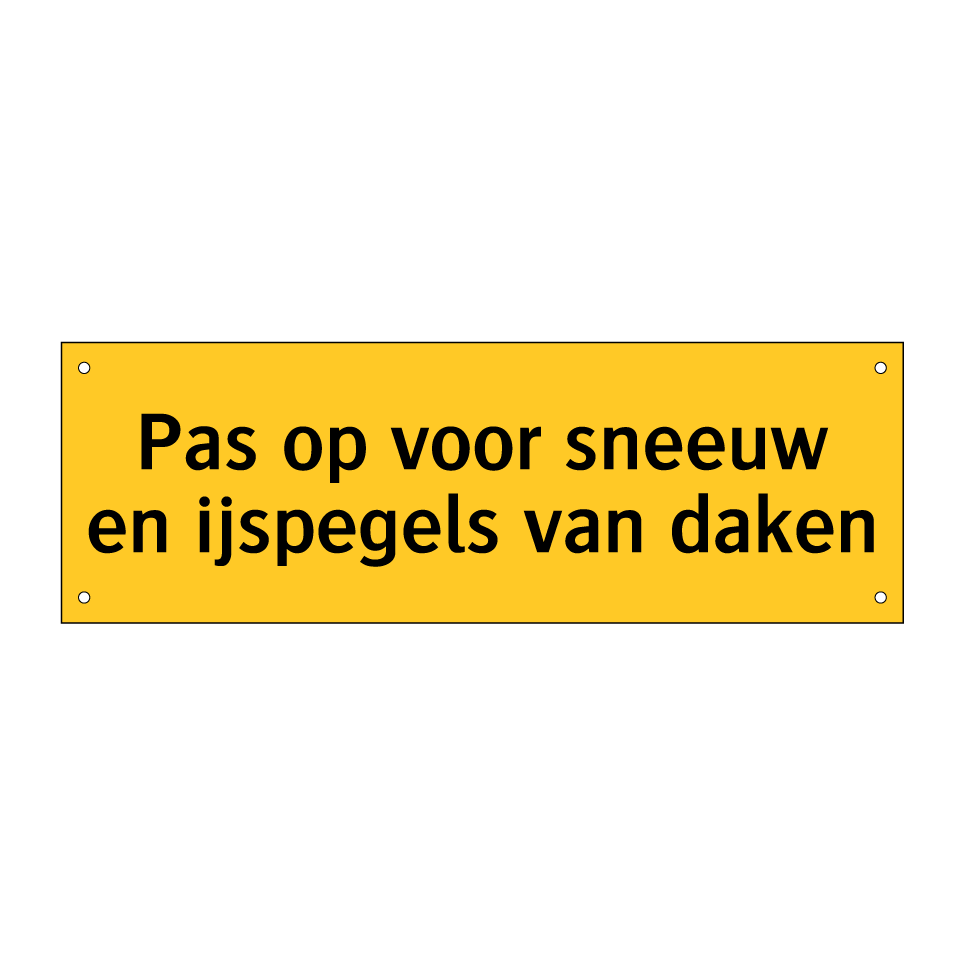 Waarschuwingsbord met de tekst Pas op voor sneeuw en ijspegels van daken