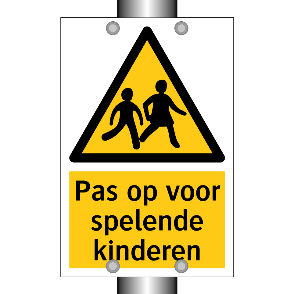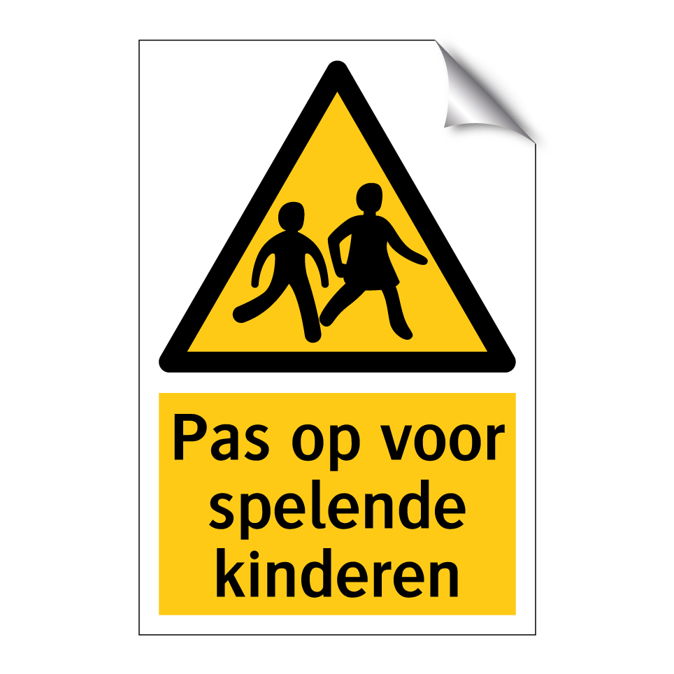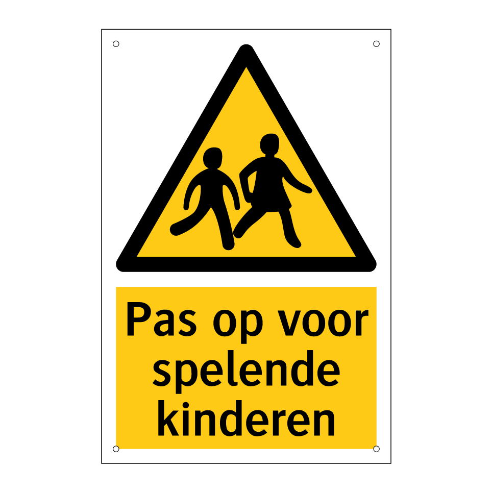 Waarschuwingsbord met de tekst Pas op voor spelende kinderen