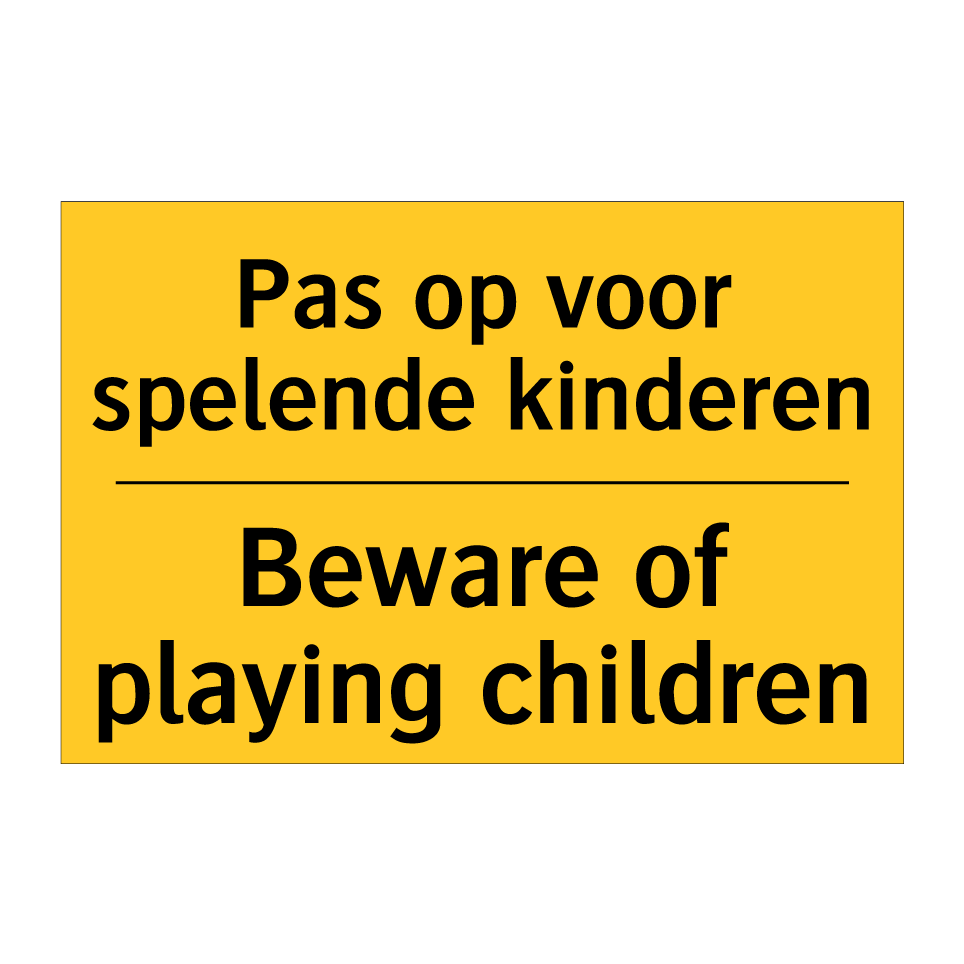 Waarschuwingsbord met de tekst Pas op voor spelende kinderen / Beware of playing children