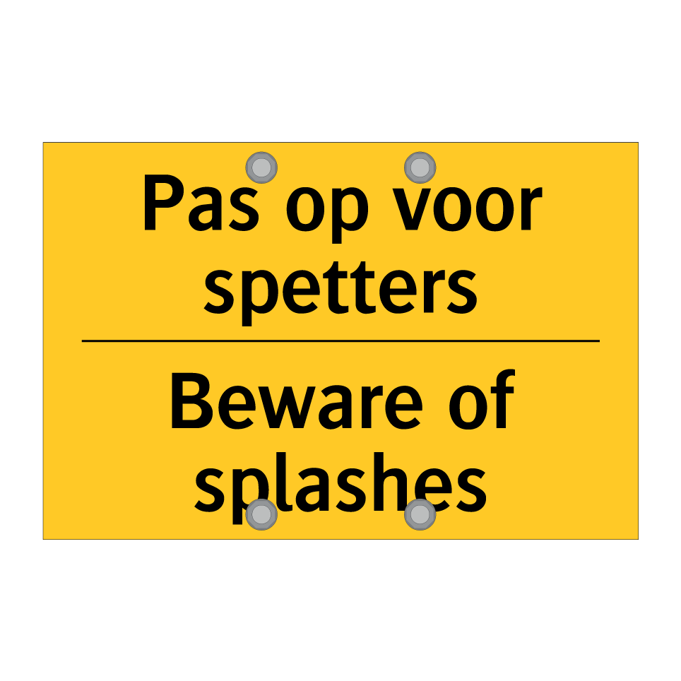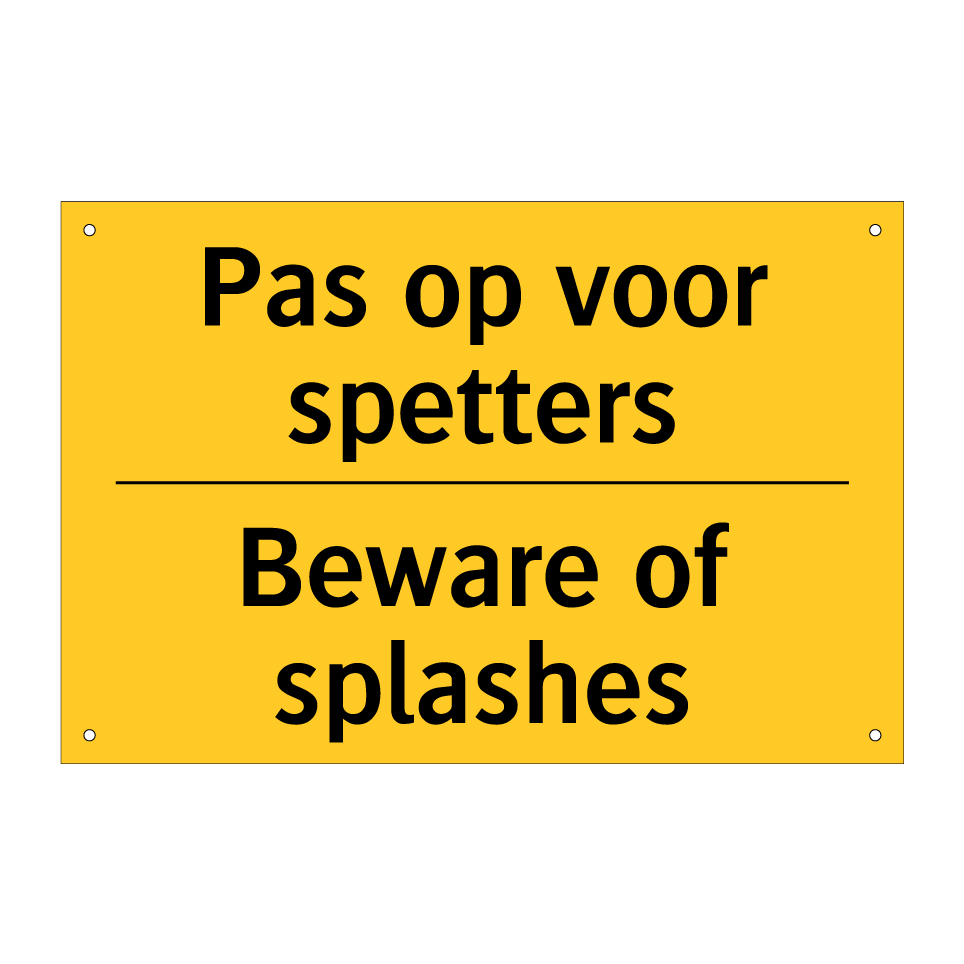 Waarschuwingsbord met de tekst Pas op voor spetters / Beware of splashes