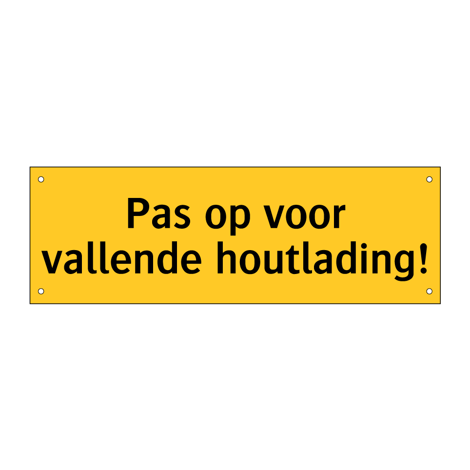 Waarschuwingsbord met de tekst Pas op voor vallende houtlading!