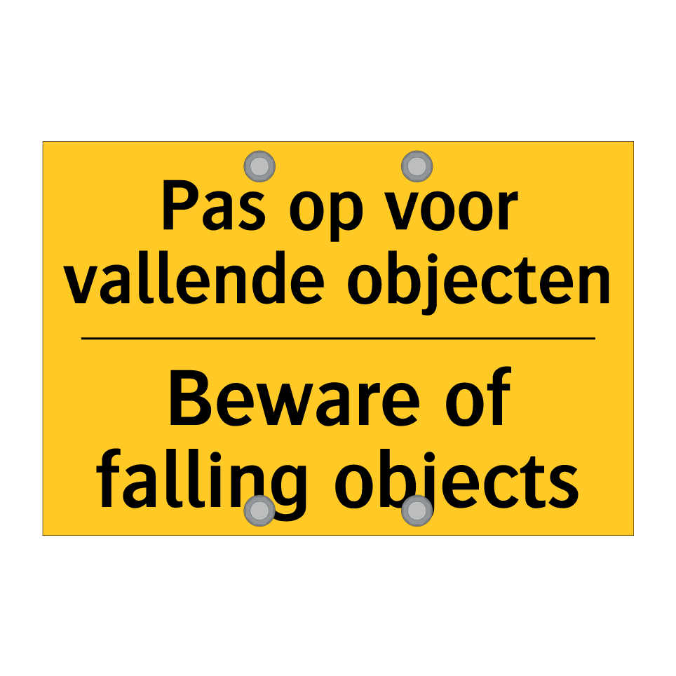 Waarschuwingsbord met de tekst Pas op voor vallende objecten / Beware of falling objects