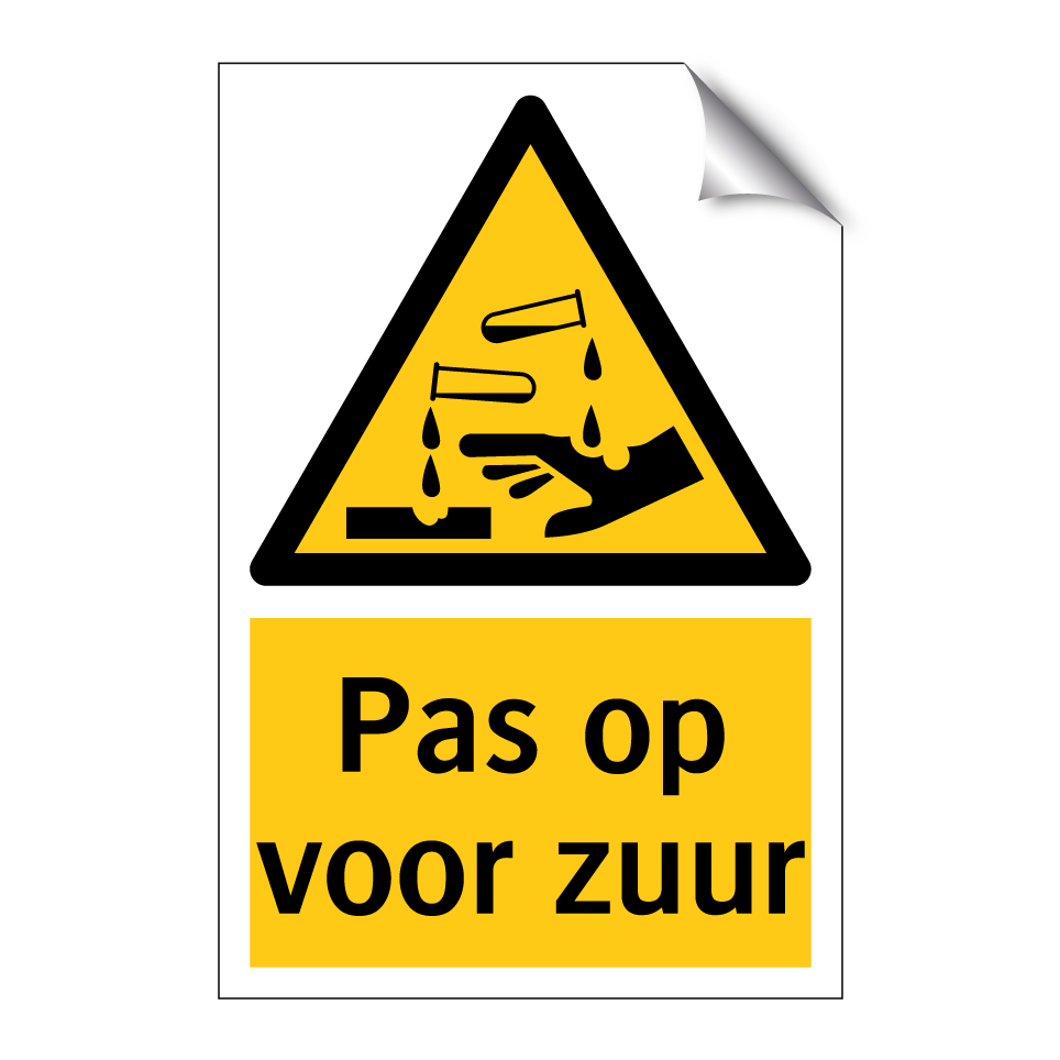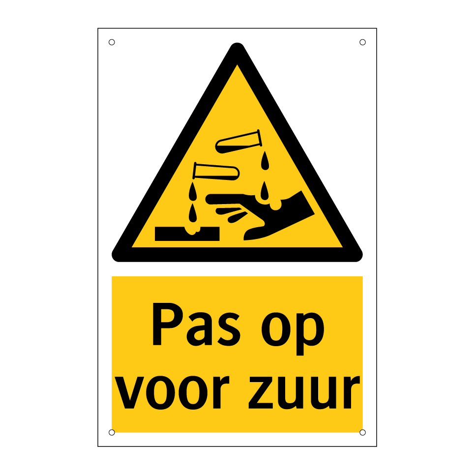 Waarschuwingsbord met de tekst Pas op voor zuur