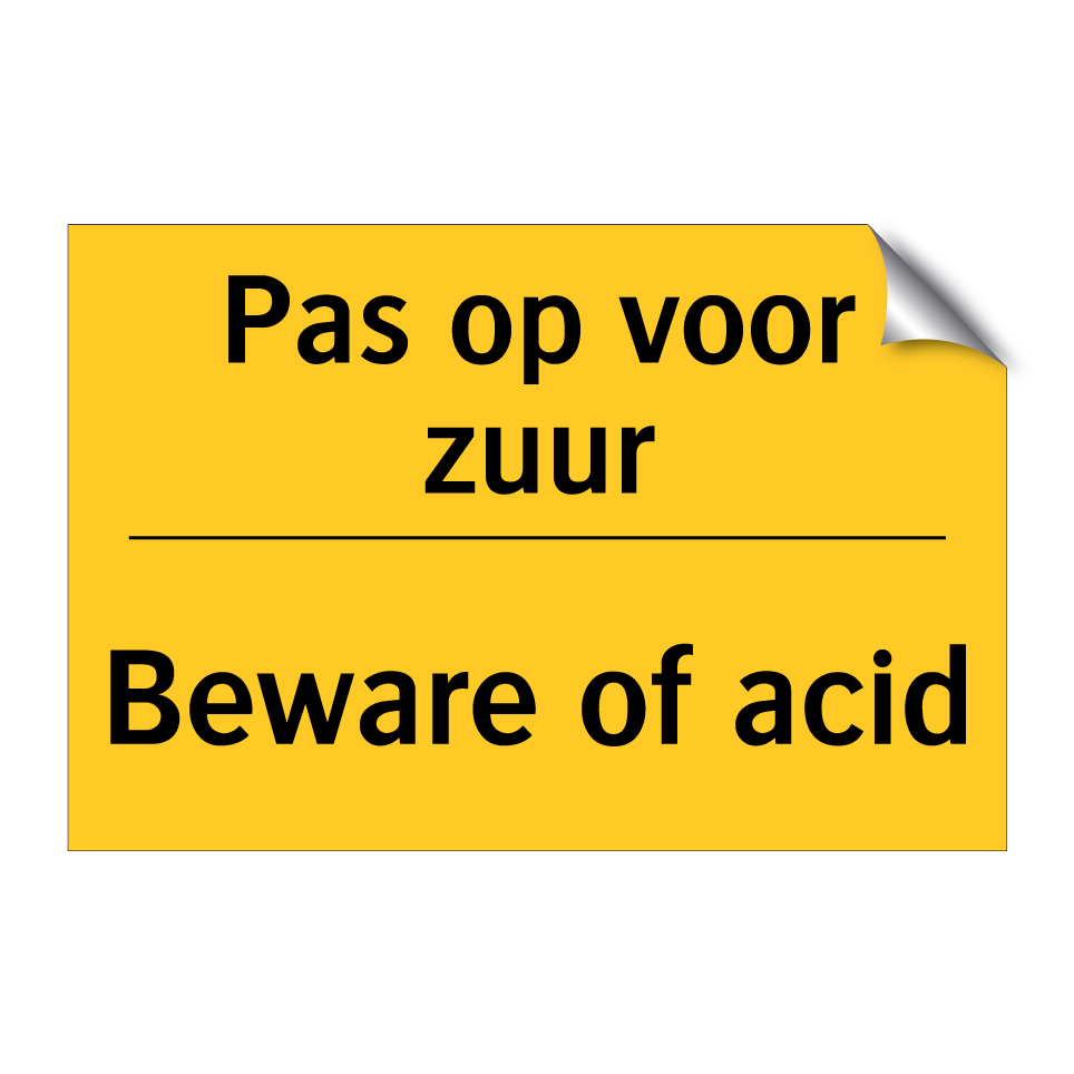 Waarschuwingsbord met de tekst Pas op voor zuur / Beware of acid