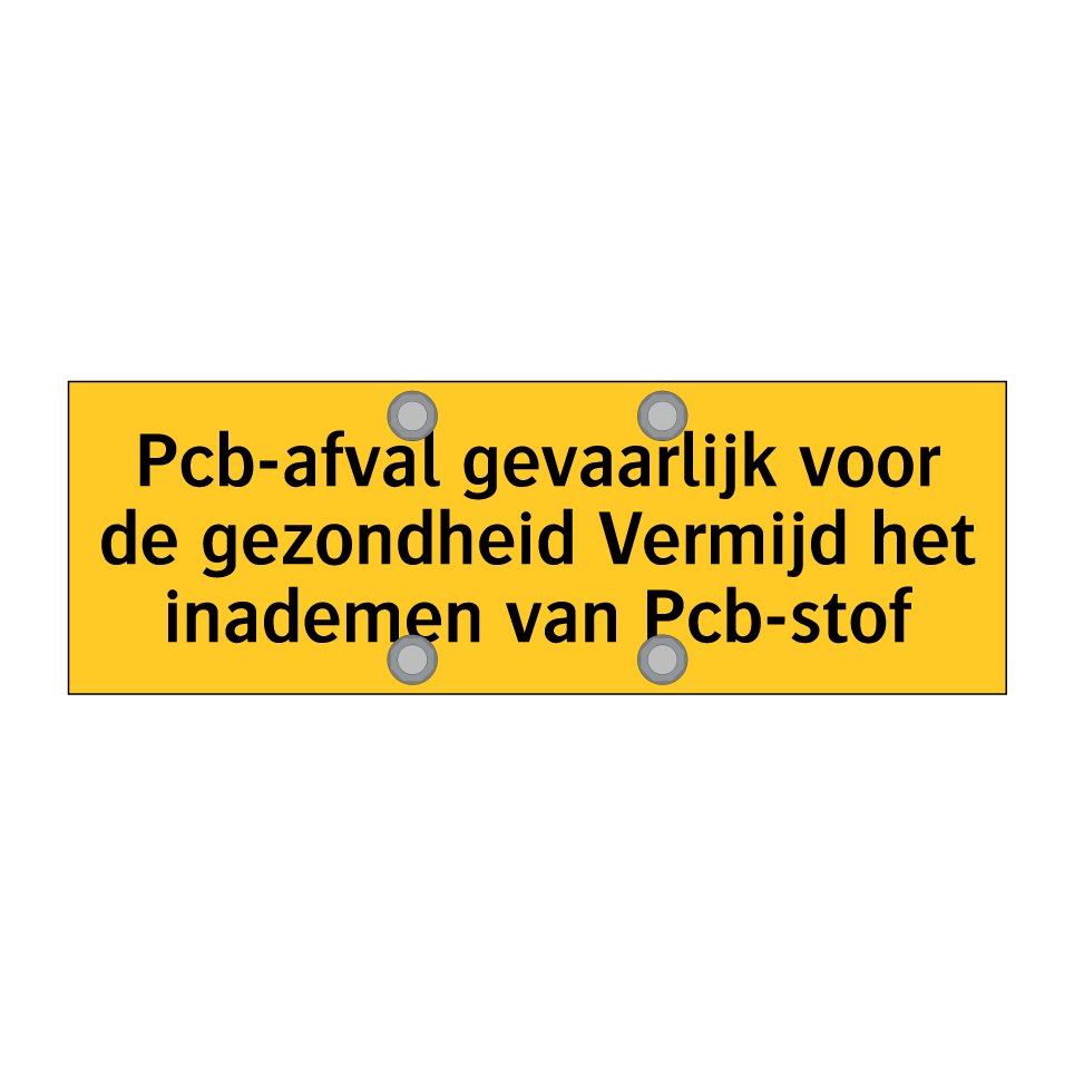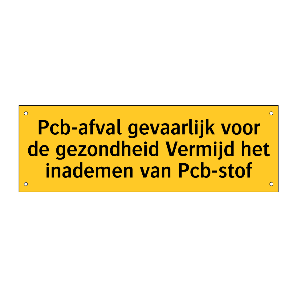 Waarschuwingsbord met de tekst Pcb-afval gevaarlijk voor de gezondheid Vermijd het inademen van Pcb-stof