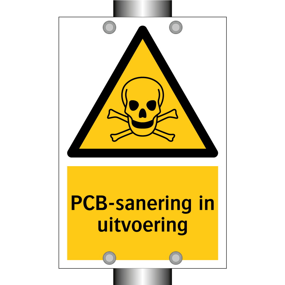 Waarschuwingsbord met de tekst PCB-sanering in uitvoering