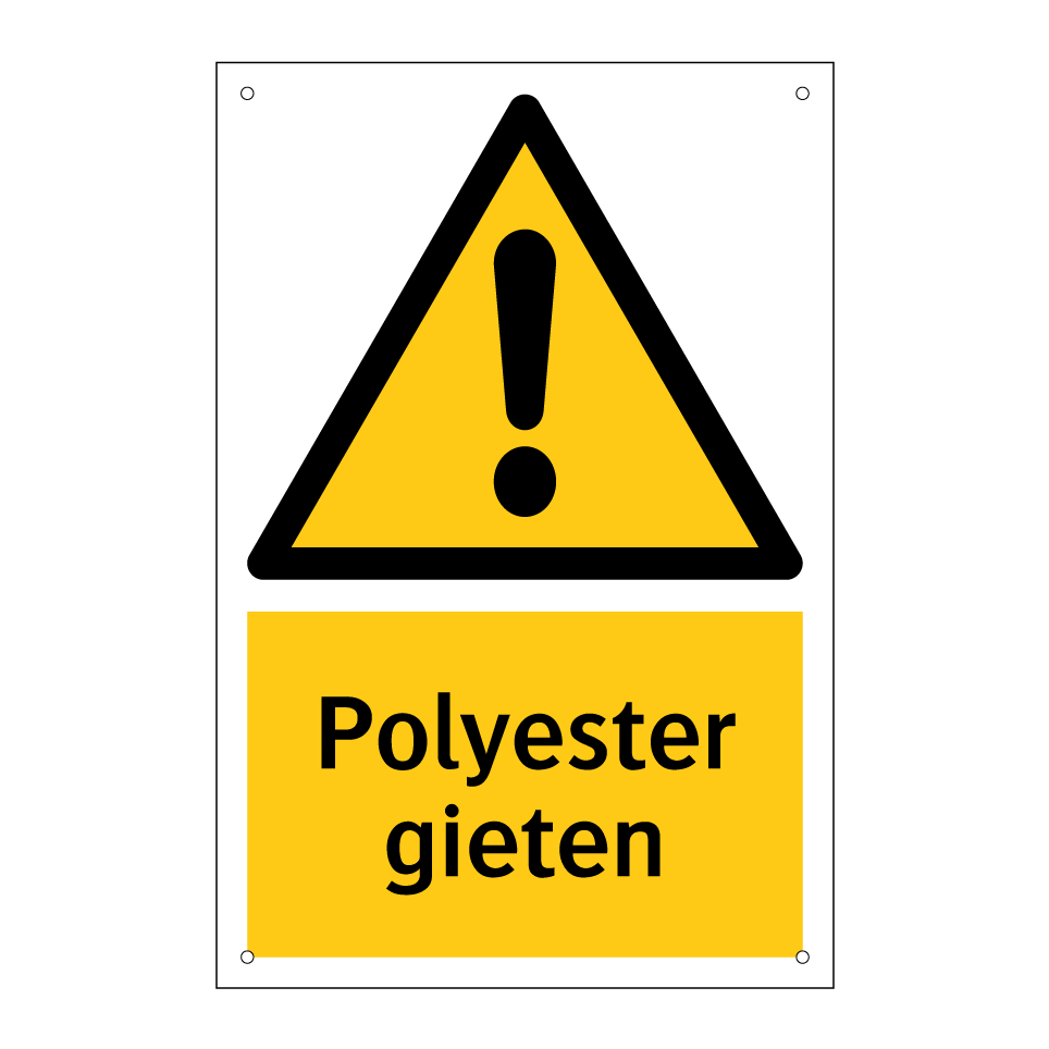 Waarschuwingsbord met de tekst Polyester gieten