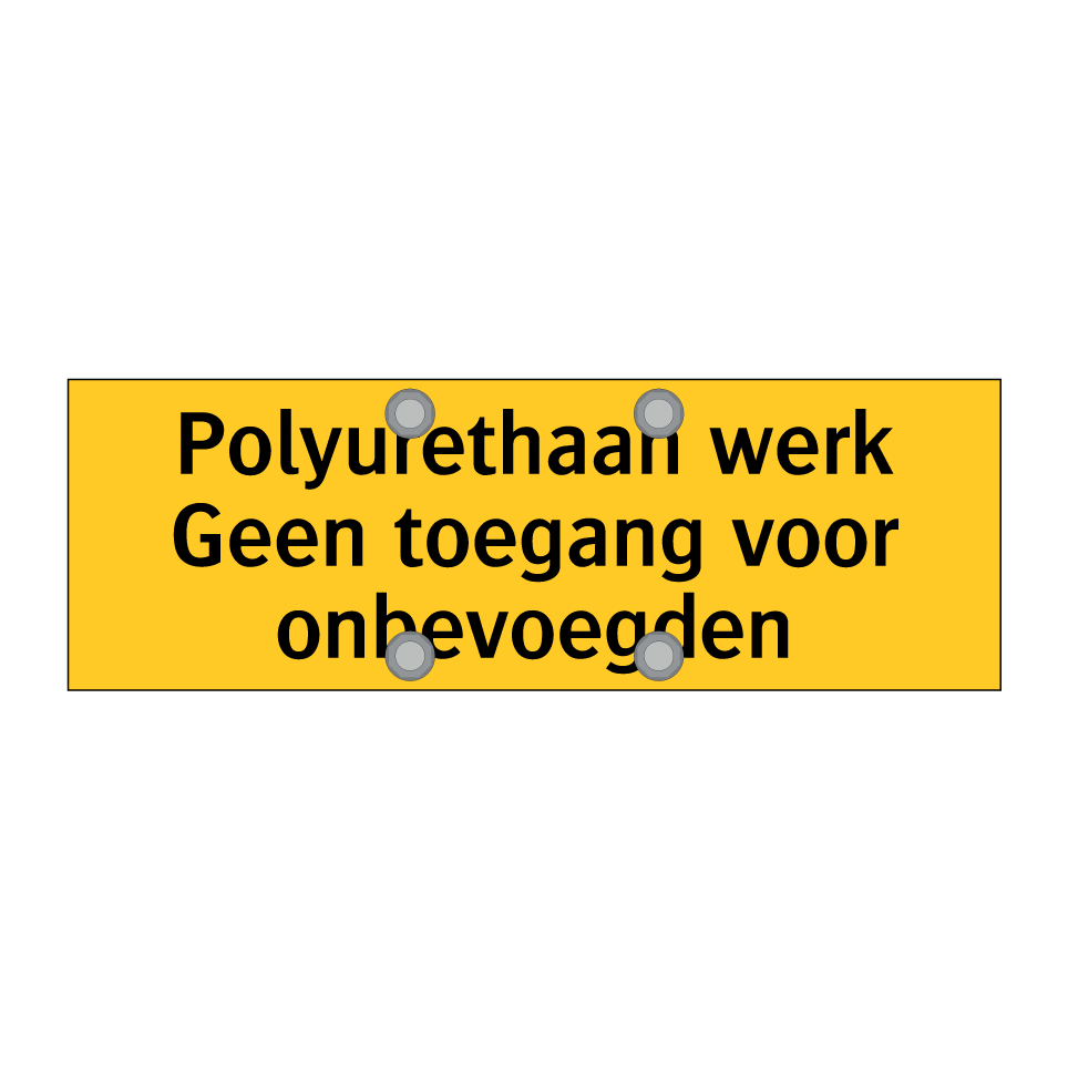 Waarschuwingsbord met de tekst Polyurethaan werk Geen toegang voor onbevoegden