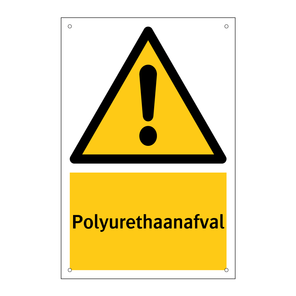 Waarschuwingsbord met de tekst Polyurethaanafval