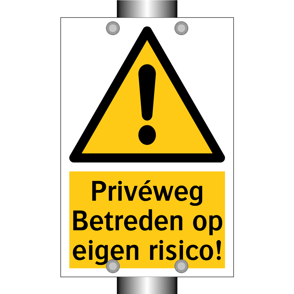 Waarschuwingsbord met de tekst Privéweg Betreden op eigen risico!