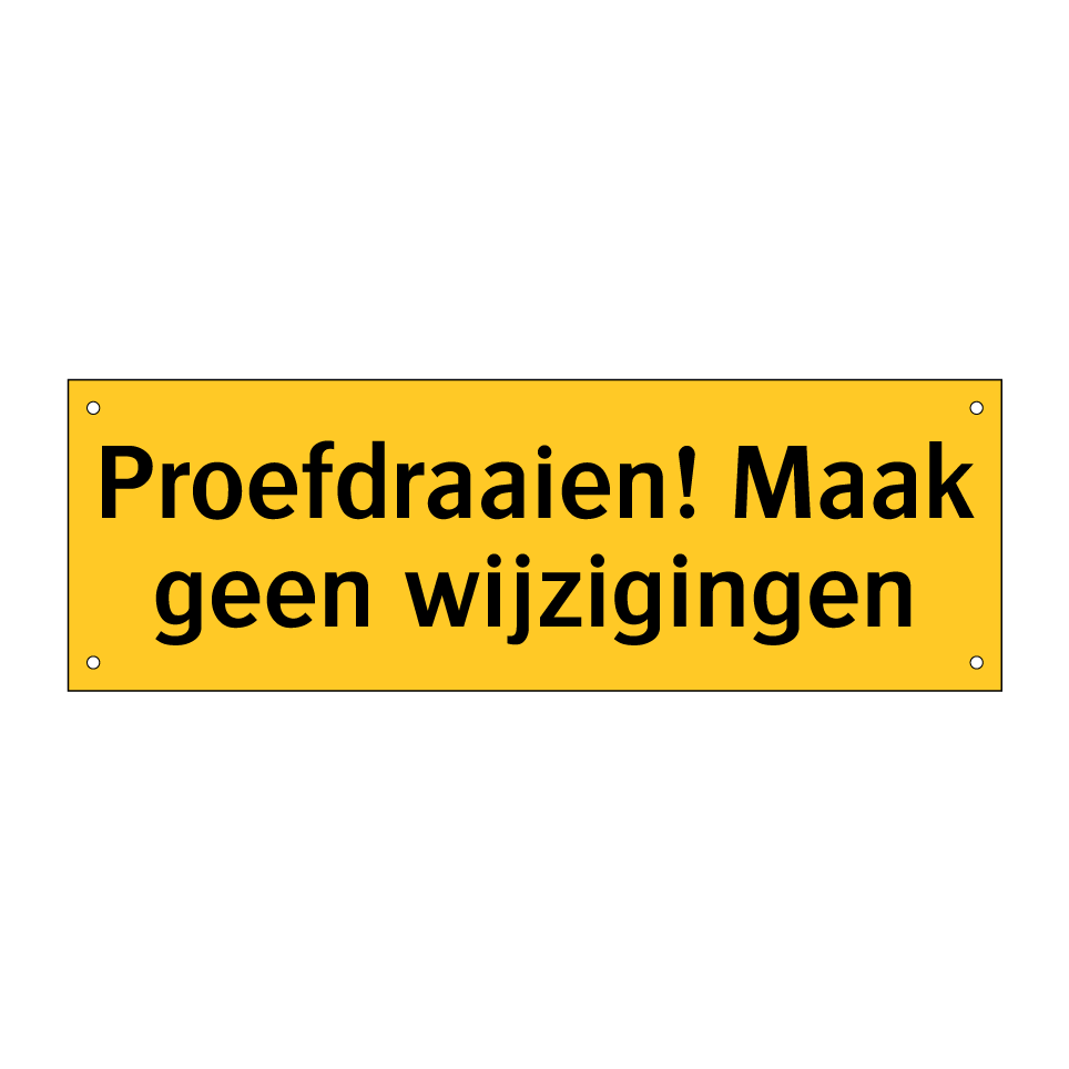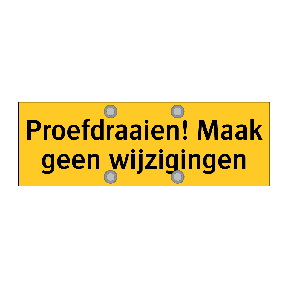 Waarschuwingsbord met de tekst Proefdraaien! Maak geen wijzigingen