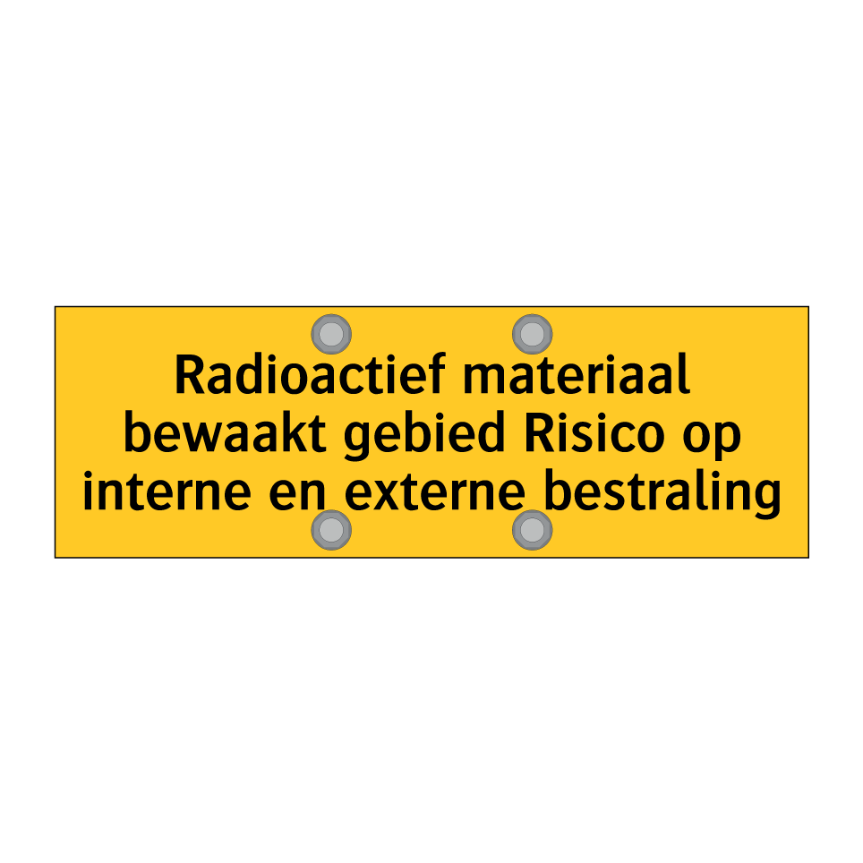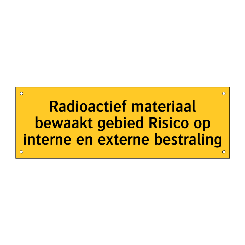 Deze waarschuwingsbord is essentieel voor het markeren van gebieden waar radioactief materiaal aanwezig is. Het dient om mensen te waarschuwen voor de risico's van zowel interne als externe straling. Plaats deze bord op toegangswegen naar gecontroleerde zones, laboratoria, ziekenhuizen of andere faciliteiten waar radioactieve stoffen worden gebruikt of opgeslagen. Door de opvallende gele achtergrond en zwarte tekst trekt het direct de aandacht en zorgt het voor een duidelijke waarschuwing. Dit waarschuwingsbord helpt bij het handhaven van veiligheidsprotocollen en het beschermen van personeel en bezoekers tegen potentiële gevaren.