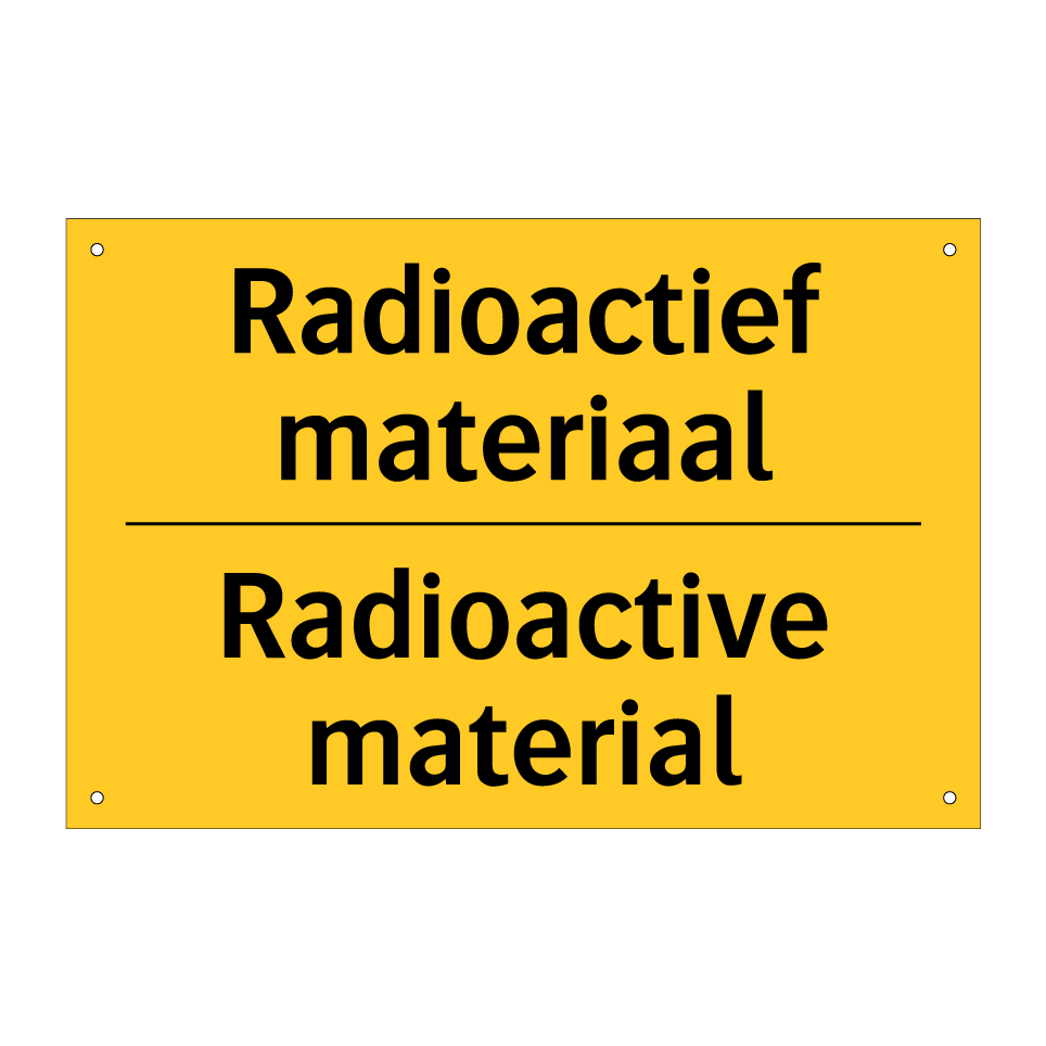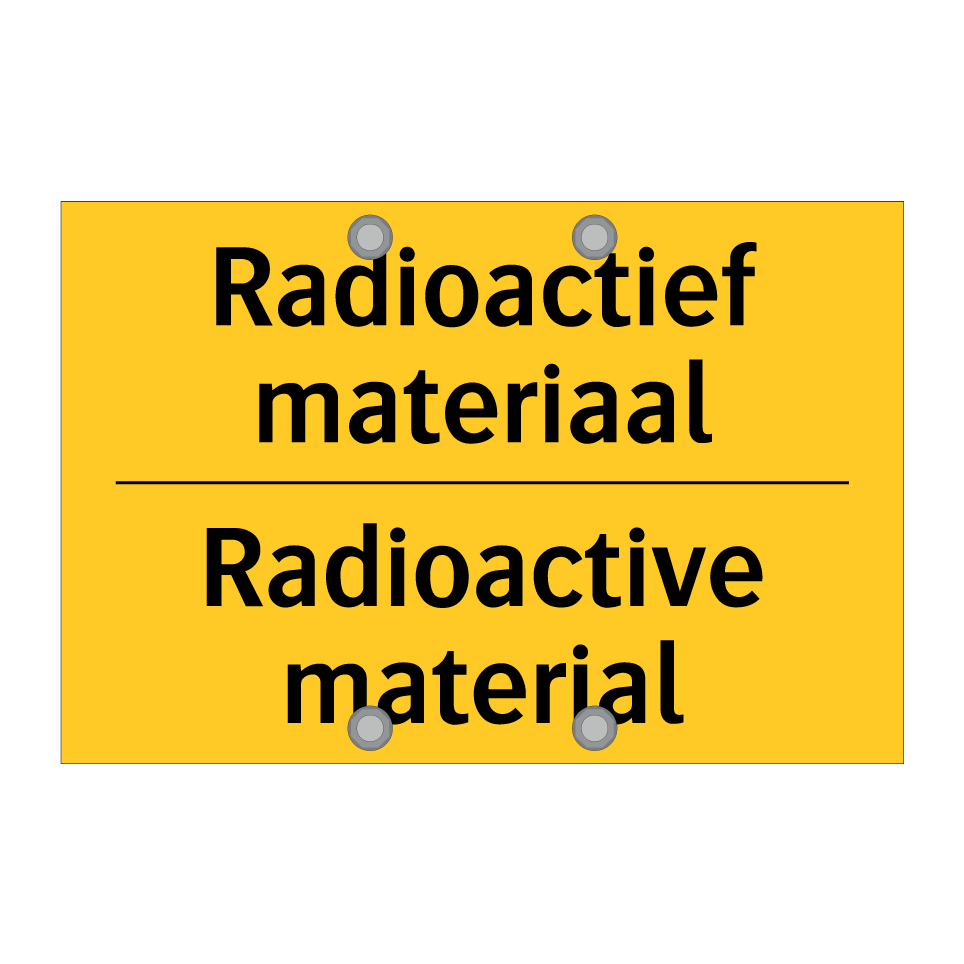 Waarschuwingsbord met de tekst Radioactief materiaal / Radioactive material