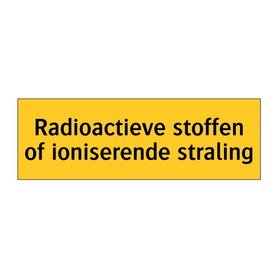 Waarschuwingsbord met de tekst Radioactieve stoffen of ioniserende straling