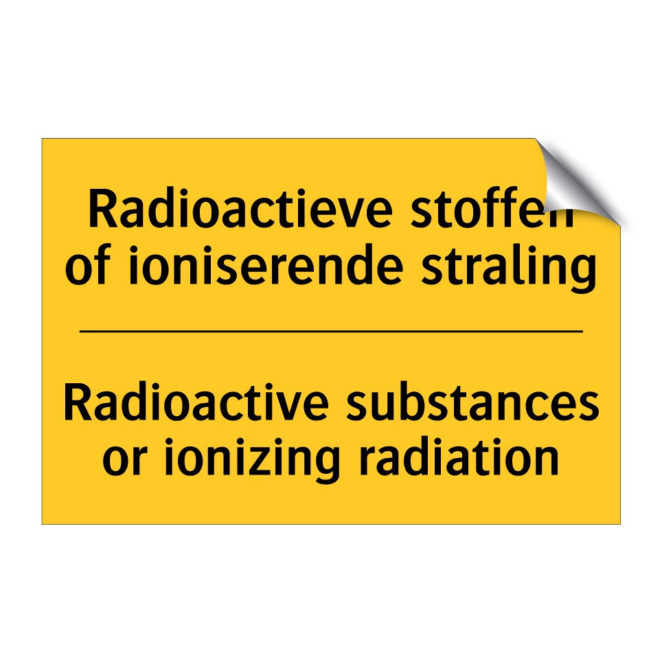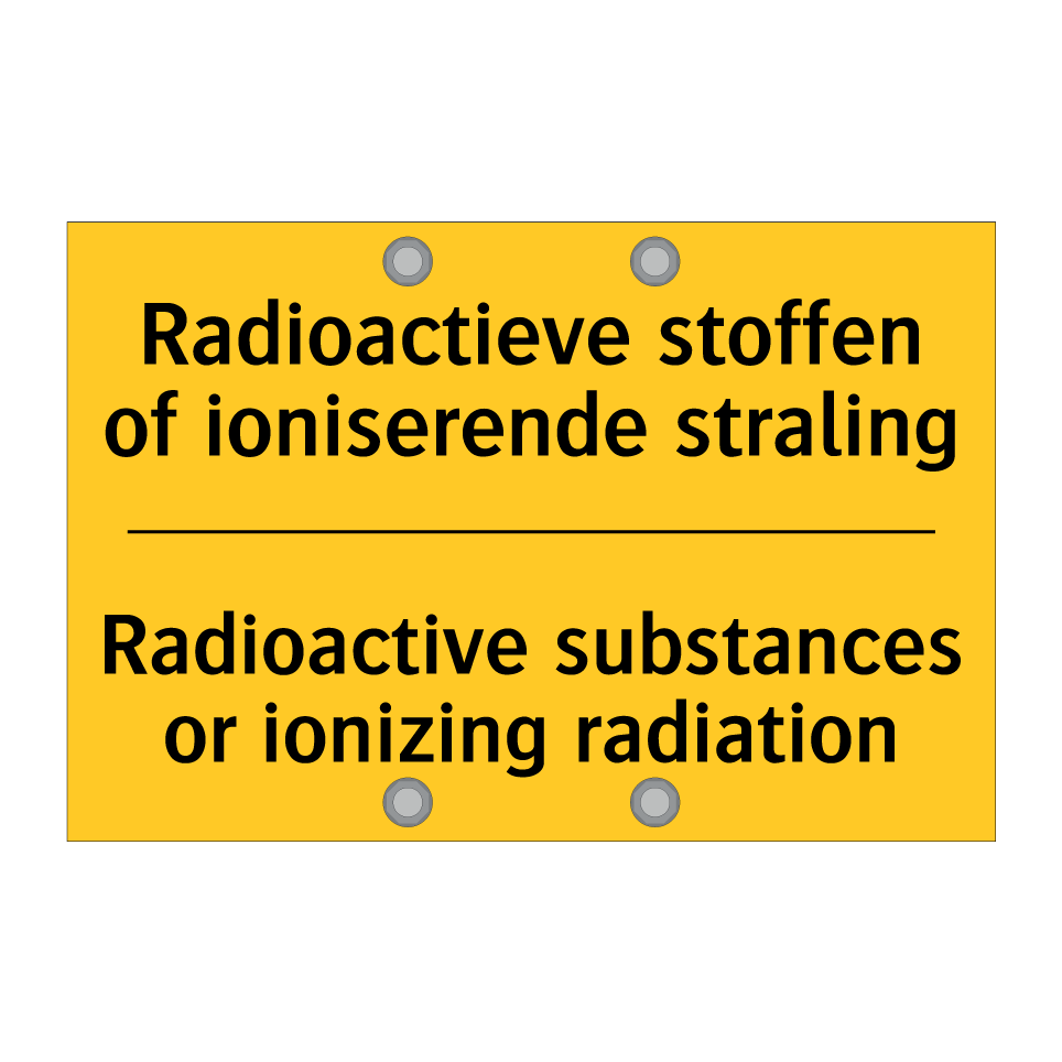Waarschuwingsbord met de tekst Radioactieve stoffen of ioniserende straling / Radioactive substances or ionizing radiation