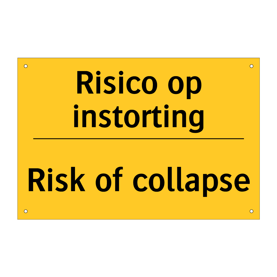 Waarschuwingsbord met de tekst Risico op instorting / Risk of collapse