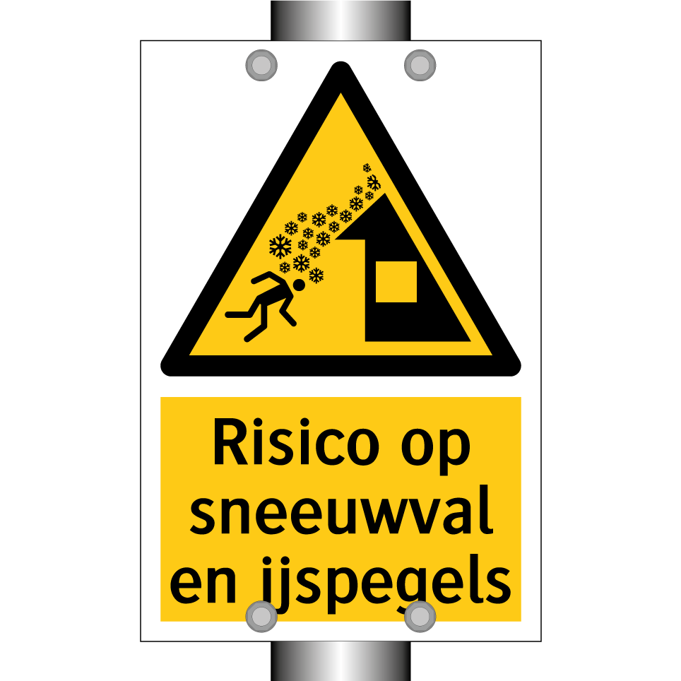 Waarschuwingsbord met de tekst Risico op sneeuwval en ijspegels