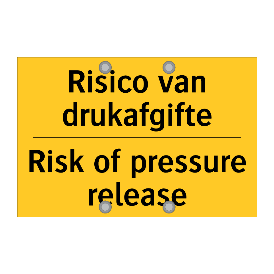 Waarschuwingsbord met de tekst Risico van drukafgifte / Risk of pressure release