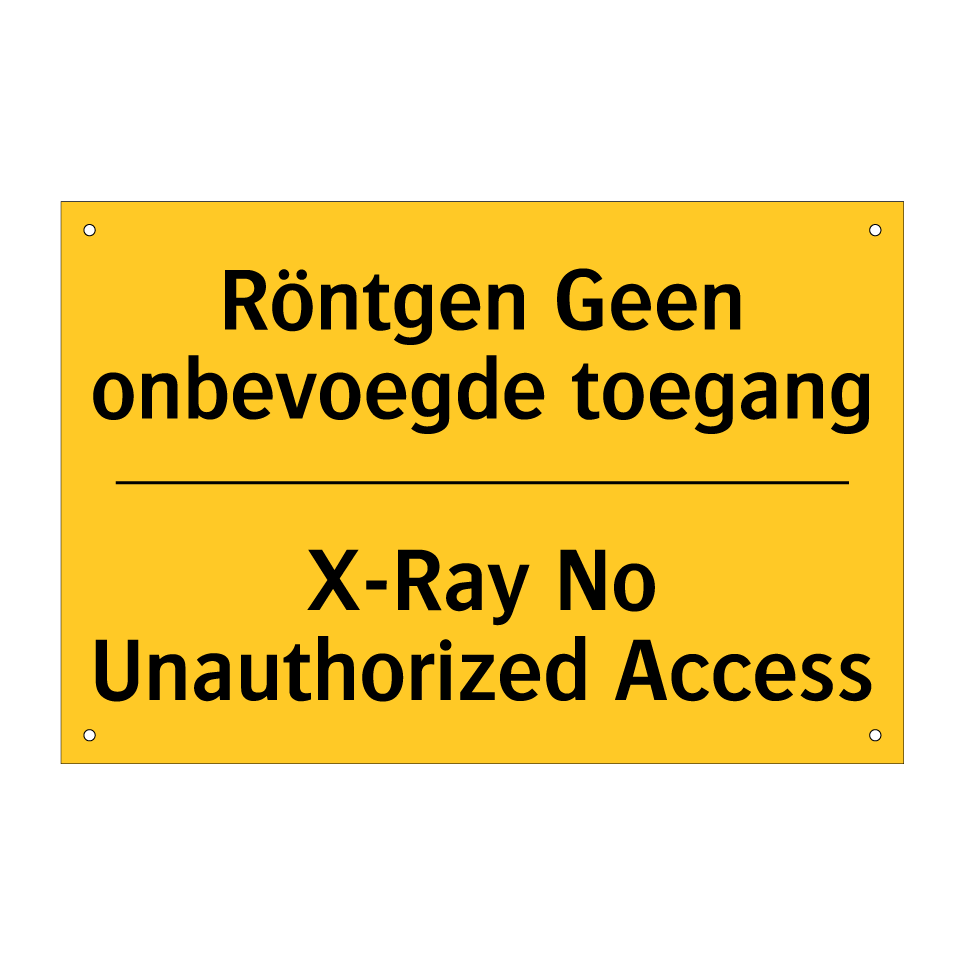 Waarschuwingsbord met de tekst Röntgen Geen onbevoegde toegang / X-Ray No Unauthorized Access