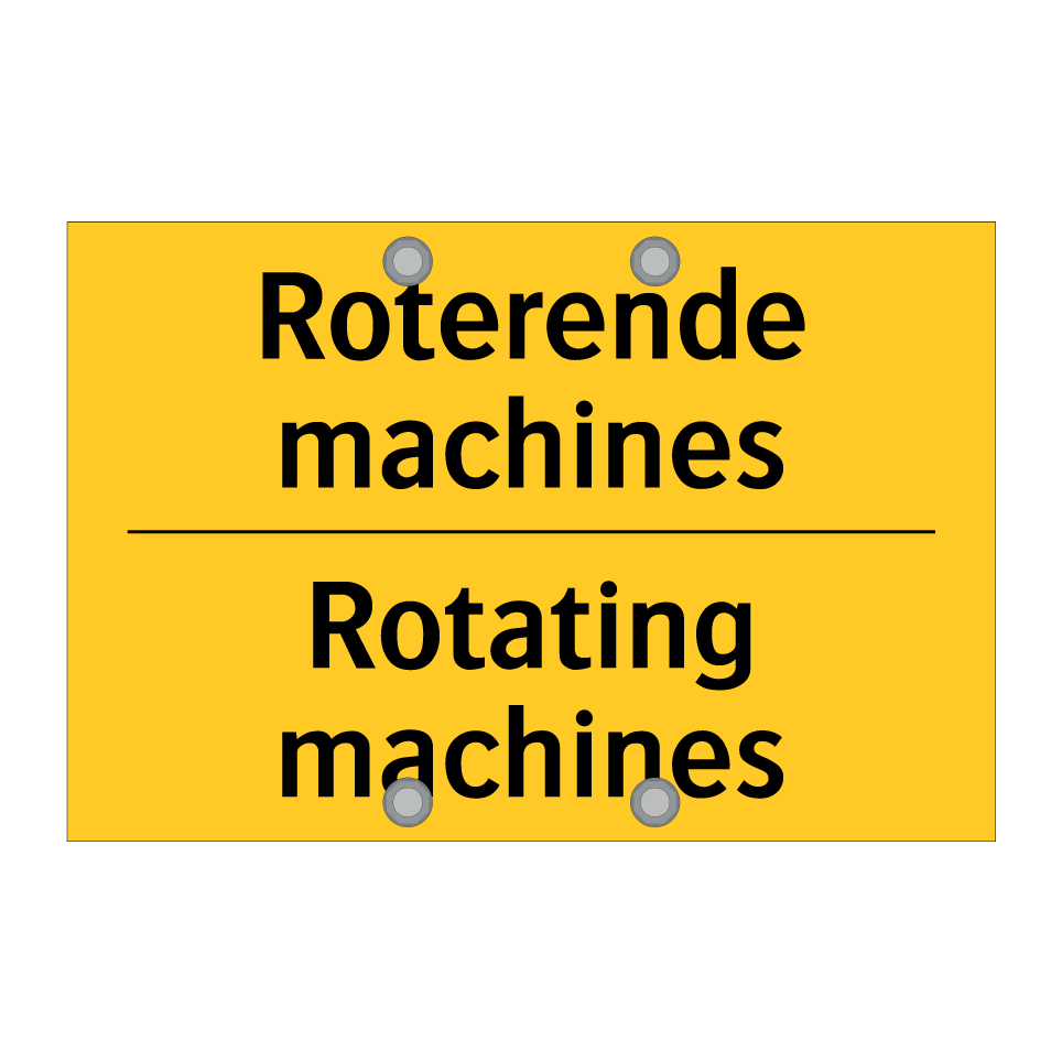 Waarschuwingsbord met de tekst Roterende machines / Rotating machines