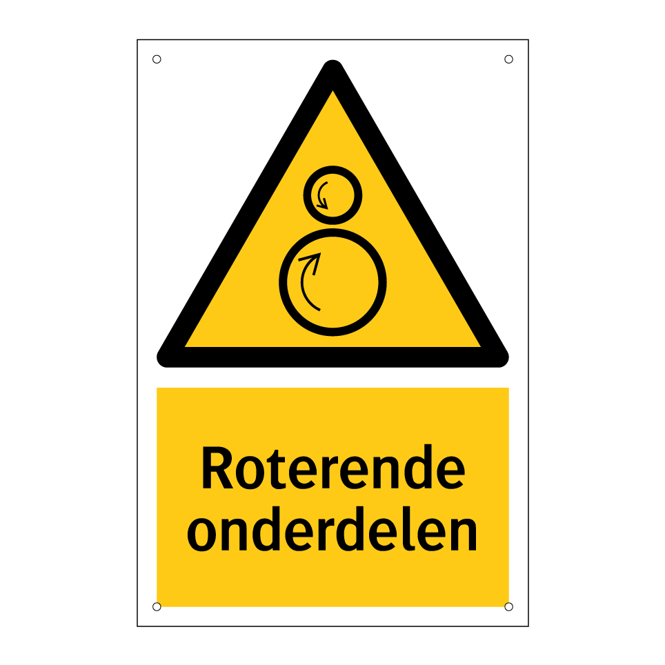 Waarschuwingsbord met de tekst Roterende onderdelen