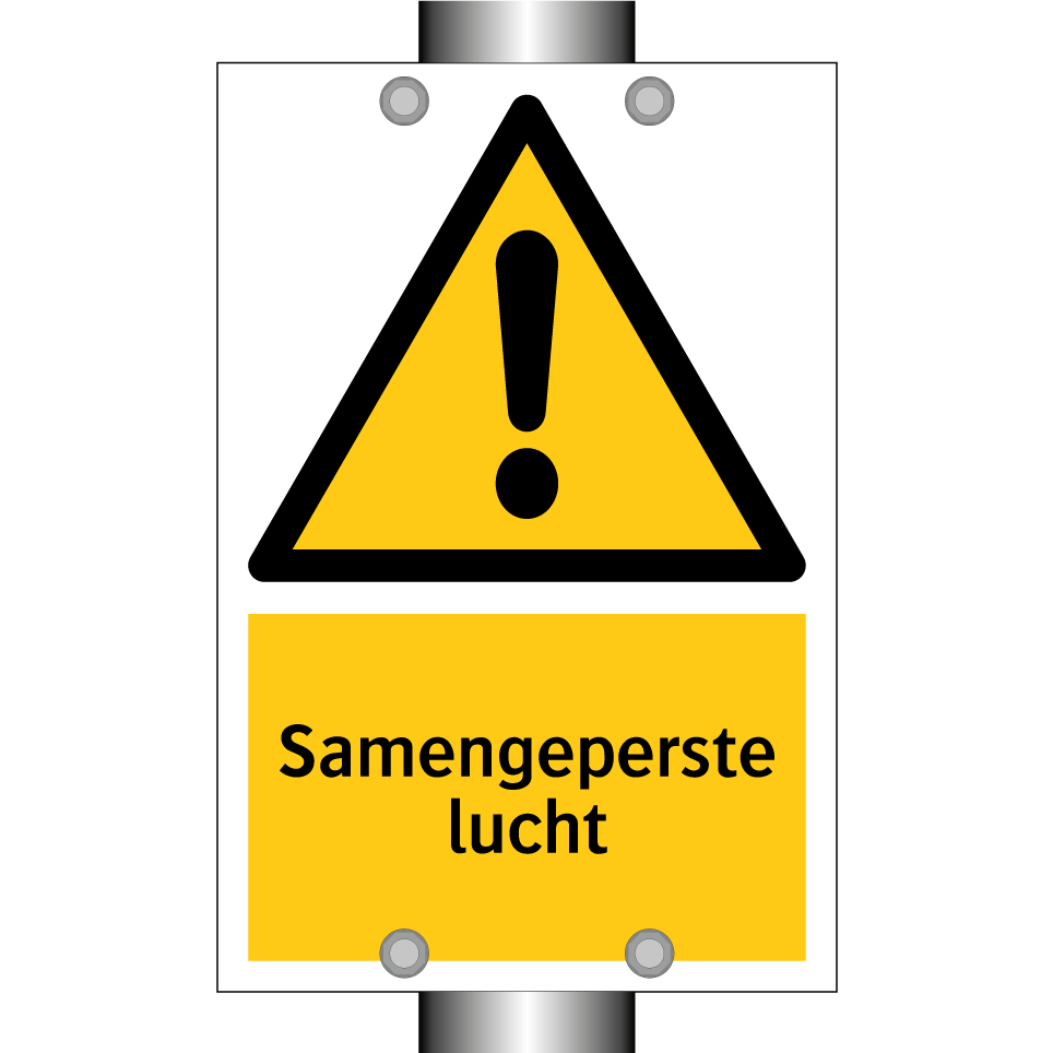 Waarschuwingsbord met de tekst Samengeperste lucht