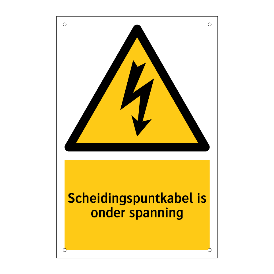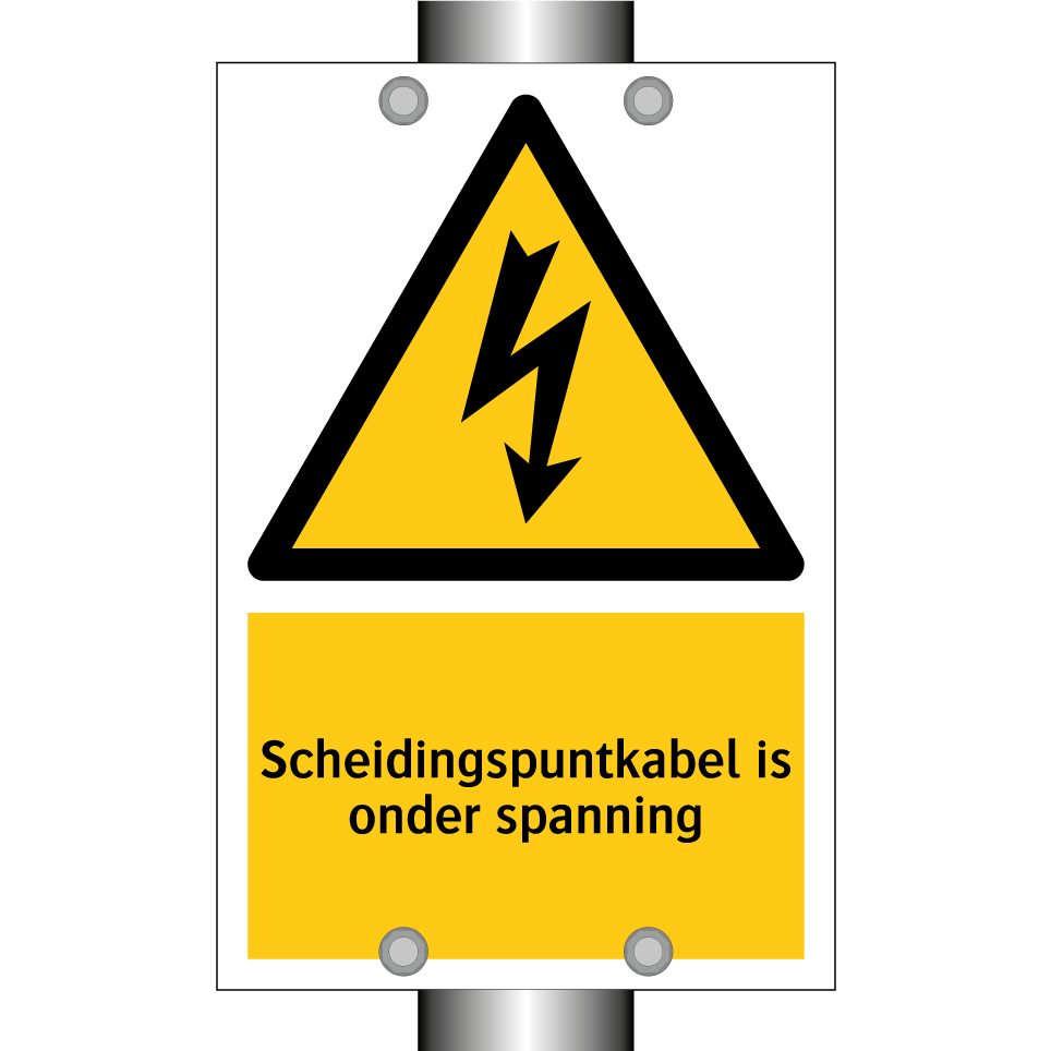 Waarschuwingsbord met de tekst Scheidingspuntkabel is onder spanning