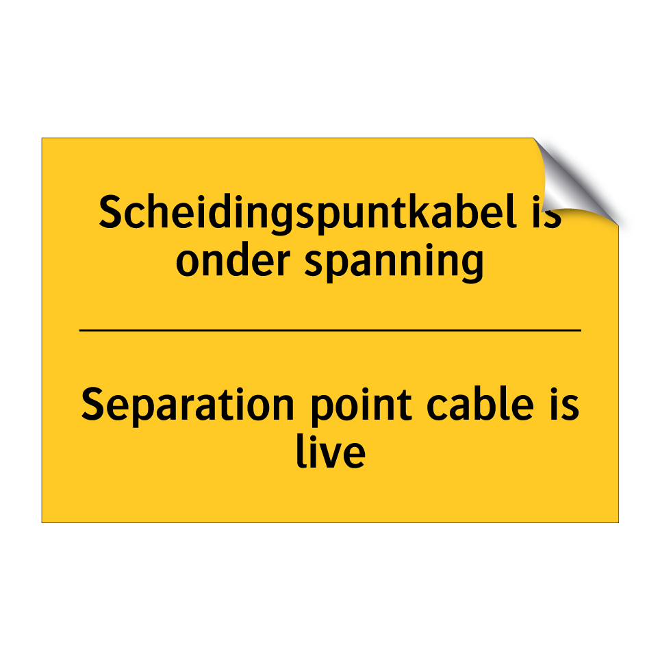 Waarschuwingsbord met de tekst Scheidingspuntkabel is onder spanning / Separation point cable is live
