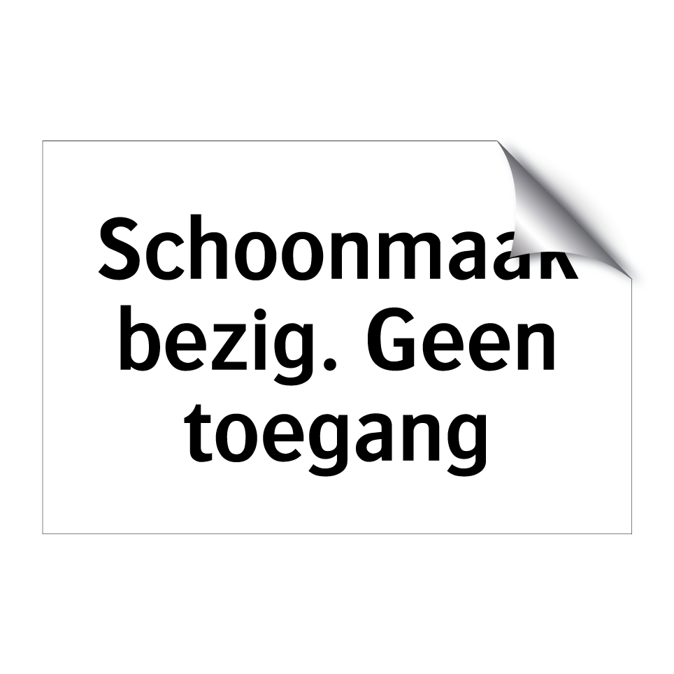 Verbodsbord met de tekst Schoonmaak bezig. Geen toegang