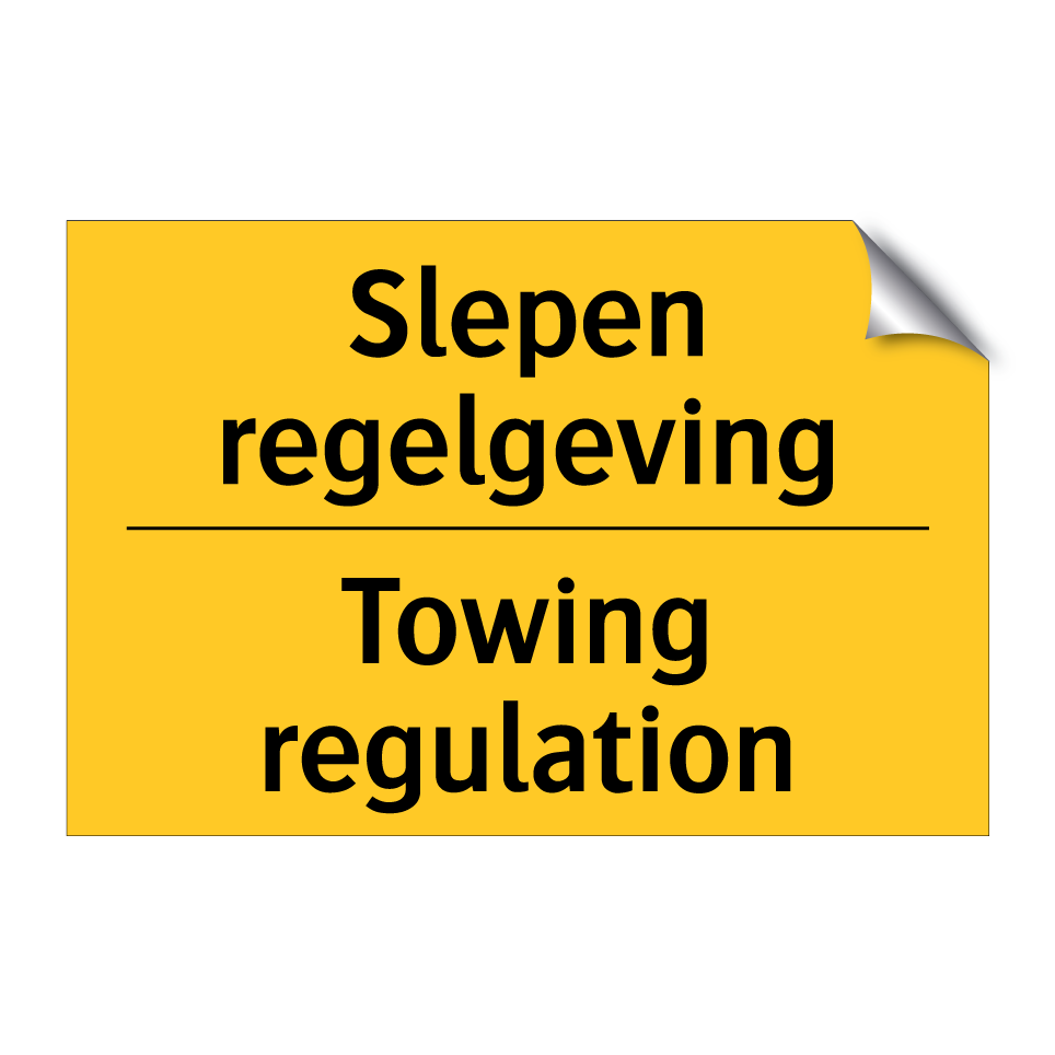 Waarschuwingsbord met de tekst Slepen regelgeving / Towing regulation