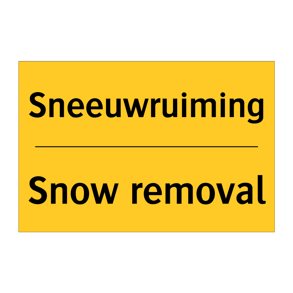 Waarschuwingsbord met de tekst Sneeuwruiming / Snow removal