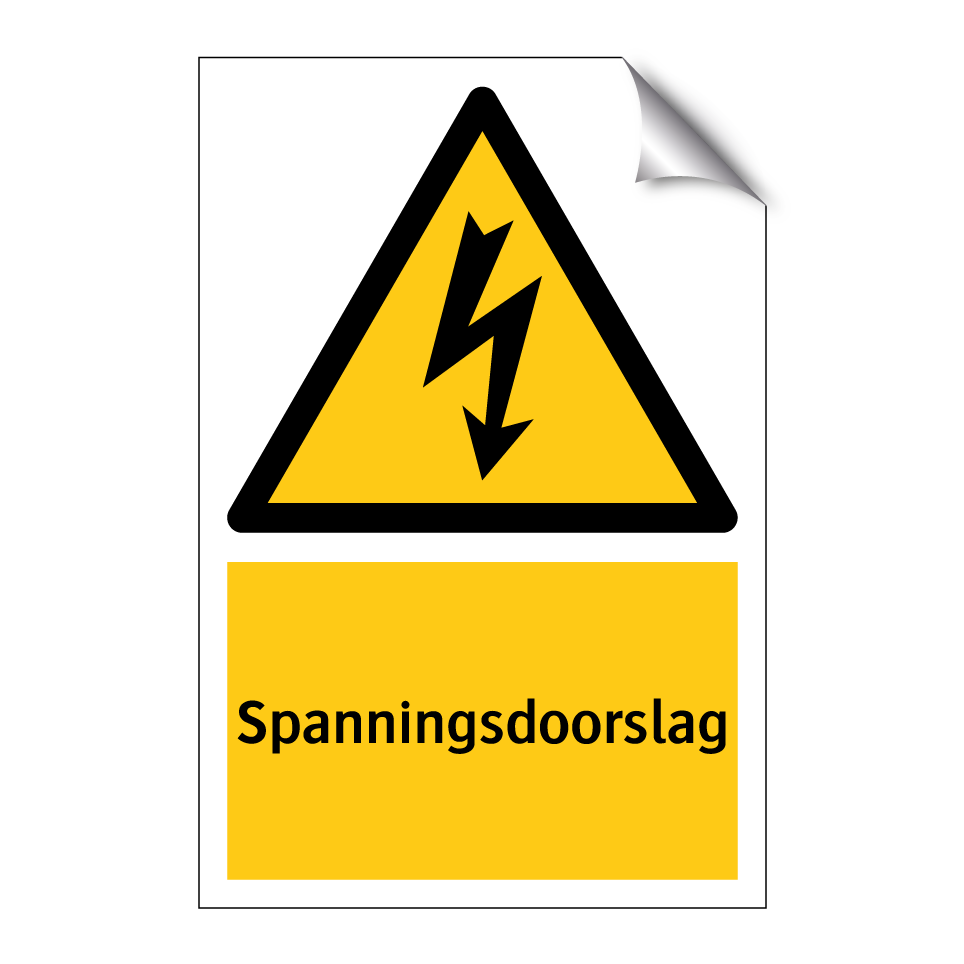 Waarschuwingsbord met de tekst Spanningsdoorslag