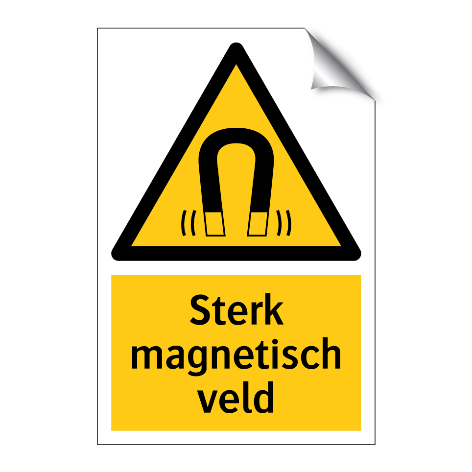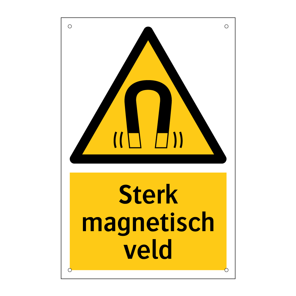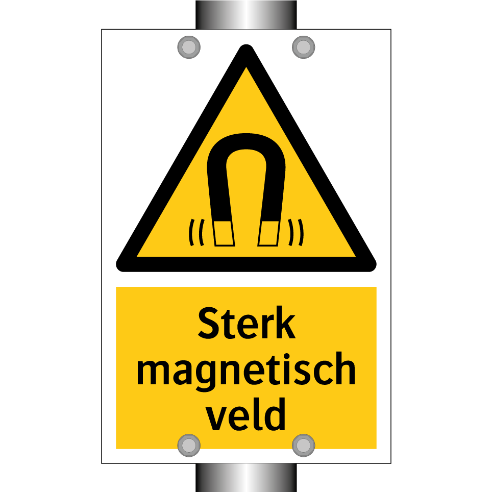 Waarschuwingsbord met de tekst Sterk magnetisch veld