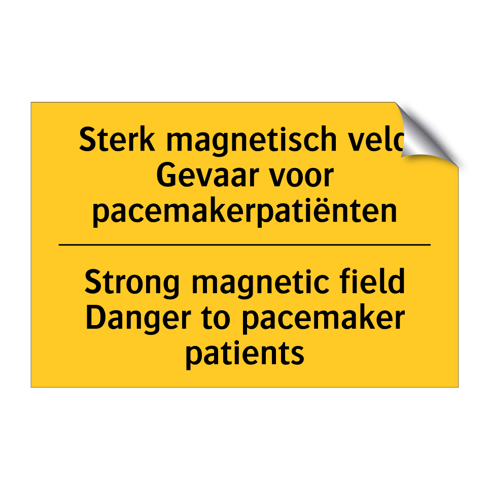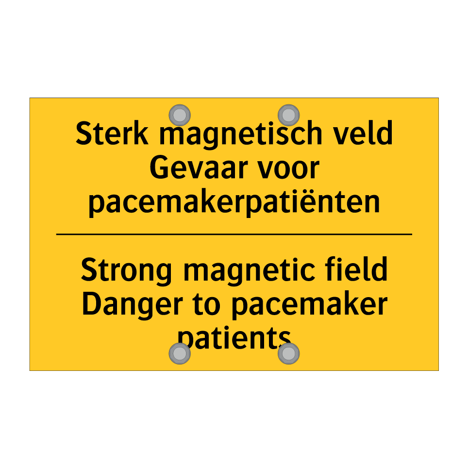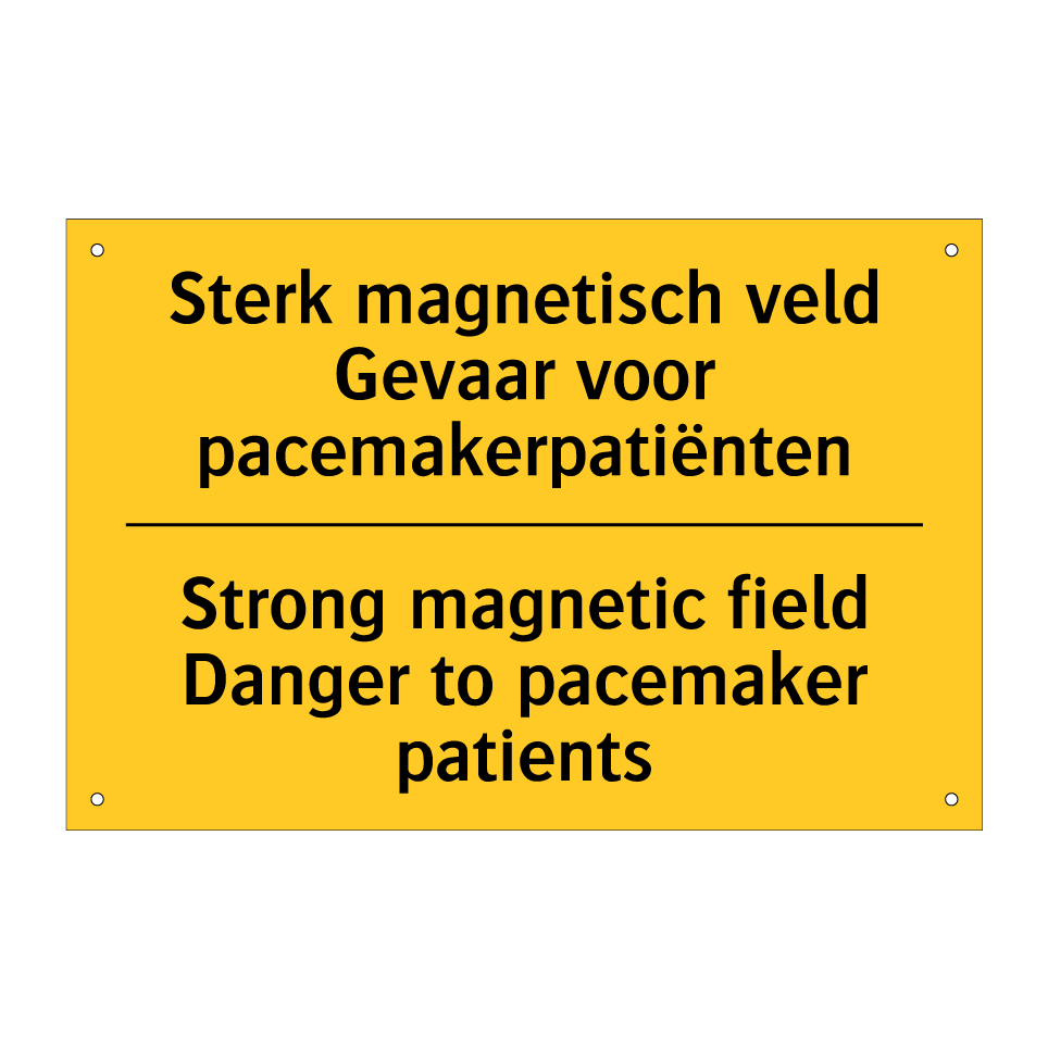 Waarschuwingsbord met de tekst Sterk magnetisch veld Gevaar voor pacemakerpatiënten / Strong magnetic field Danger to pacemaker patients