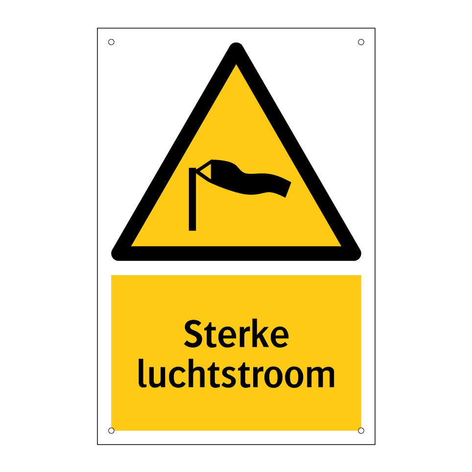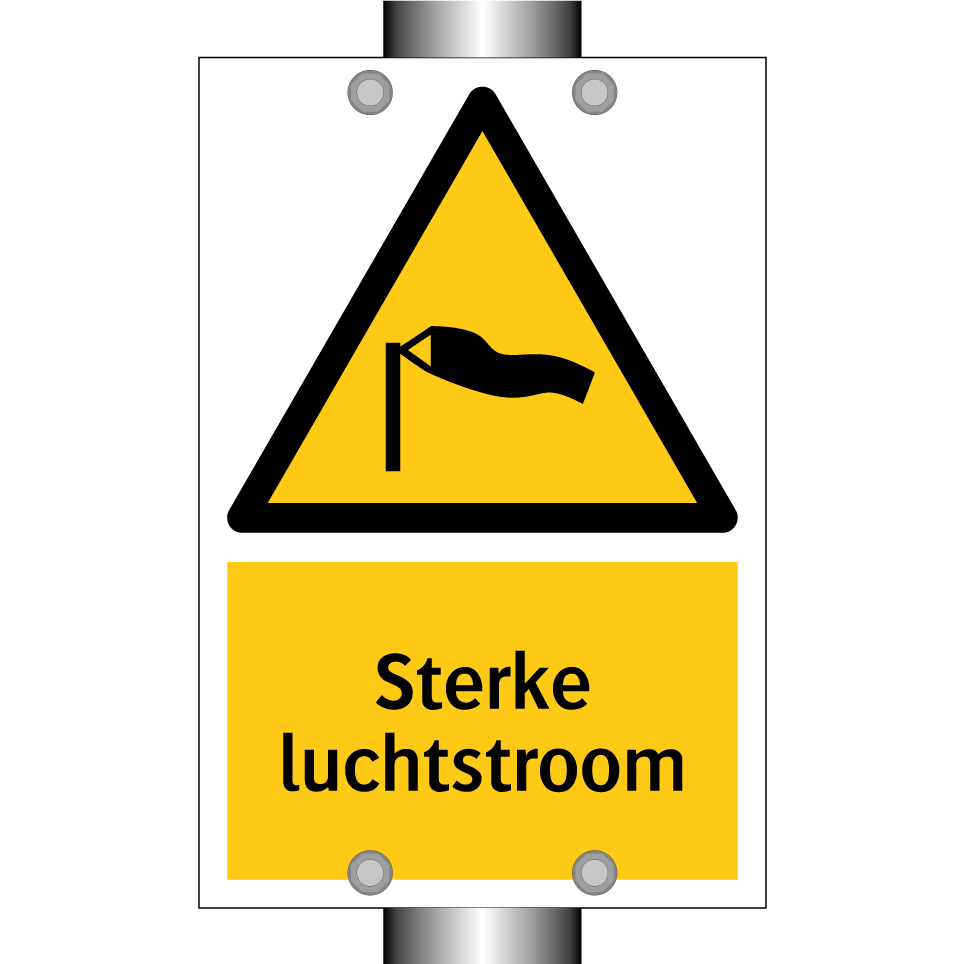 Waarschuwingsbord met de tekst Sterke luchtstroom
