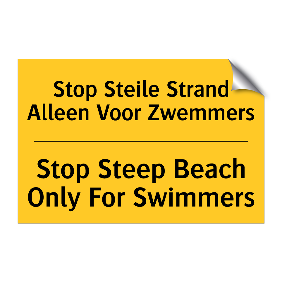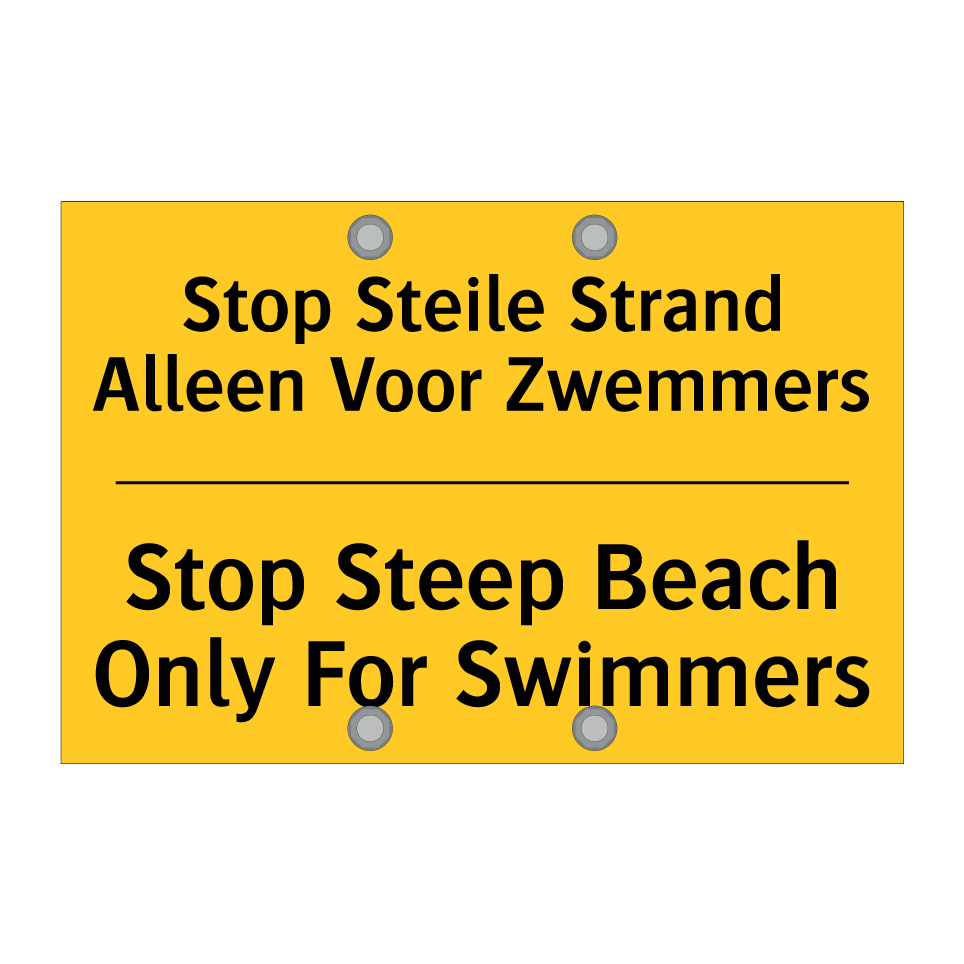 Waarschuwingsbord met de tekst Stop Steile Strand Alleen Voor Zwemmers / Stop Steep Beach Only For Swimmers