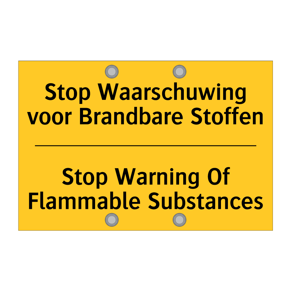 Waarschuwingsbord met de tekst Stop Waarschuwing voor Brandbare Stoffen / Stop Warning Of Flammable Substances