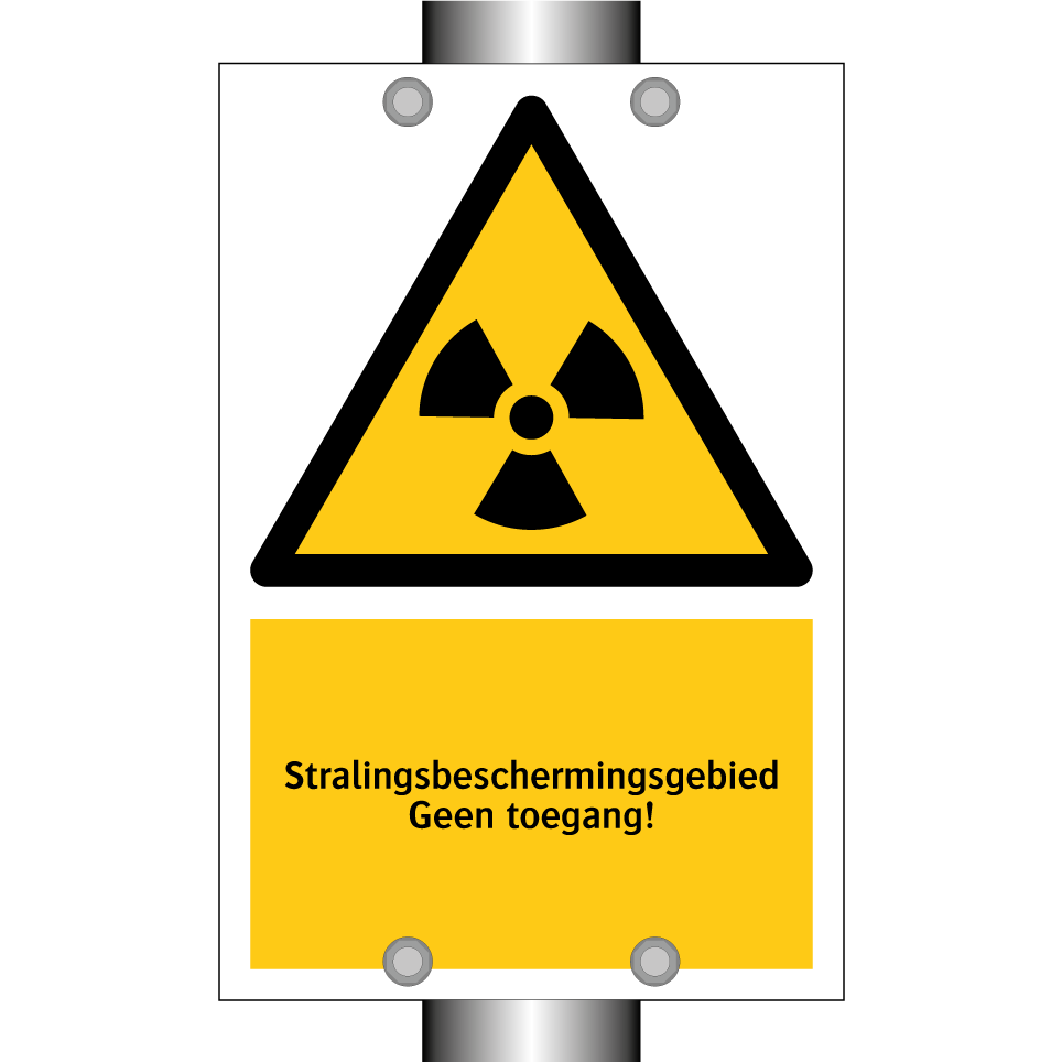 Waarschuwingsbord met de tekst Stralingsbeschermingsgebied Geen toegang!