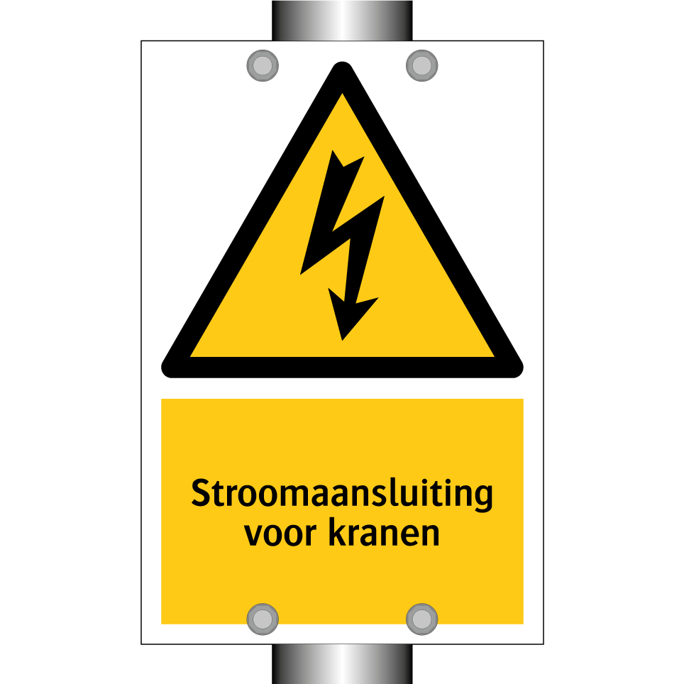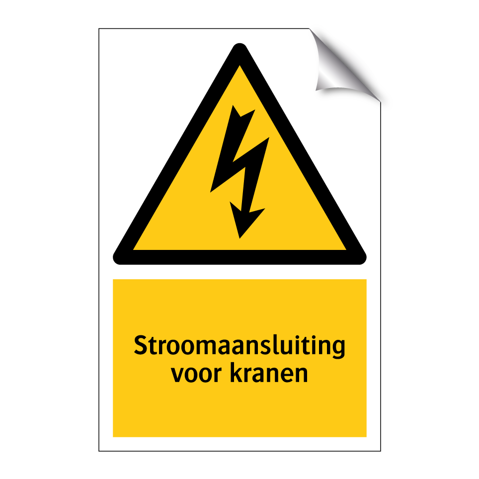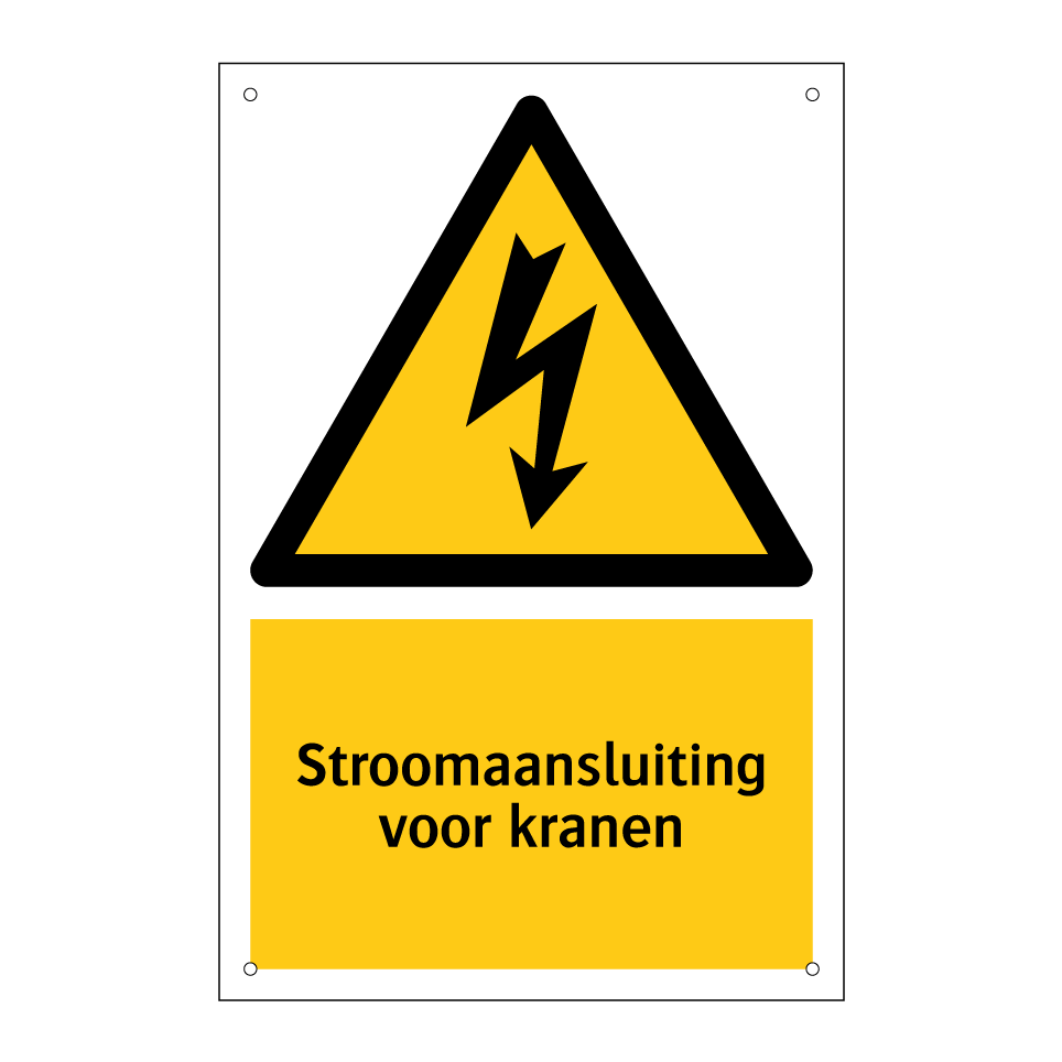 Waarschuwingsbord met de tekst Stroomaansluiting voor kranen