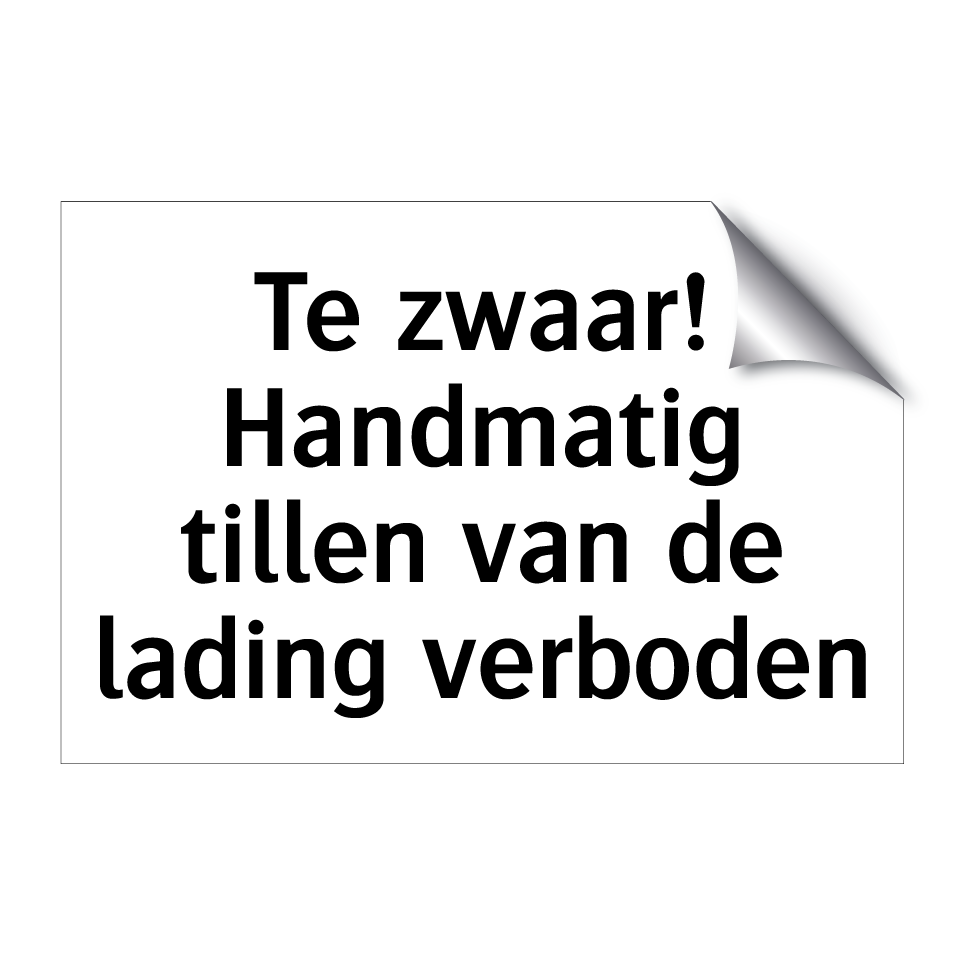 Verbodsbord met de tekst Te zwaar! Handmatig tillen van de lading verboden