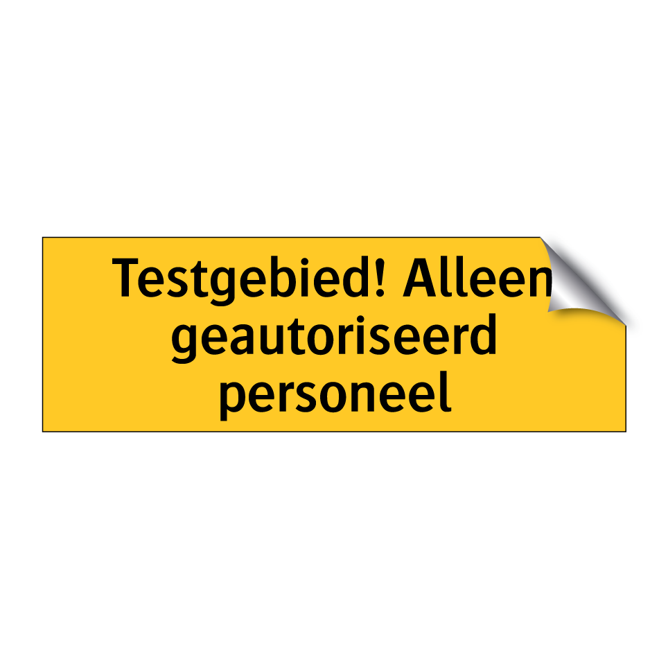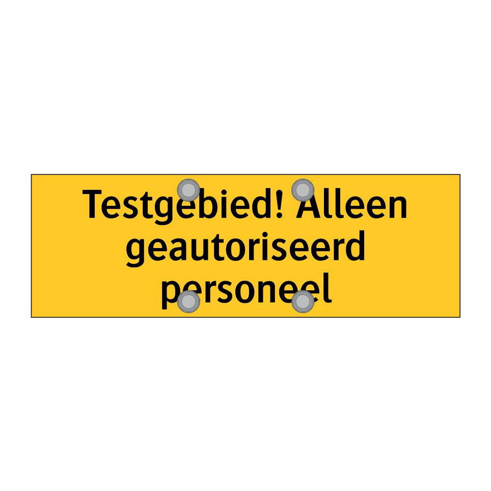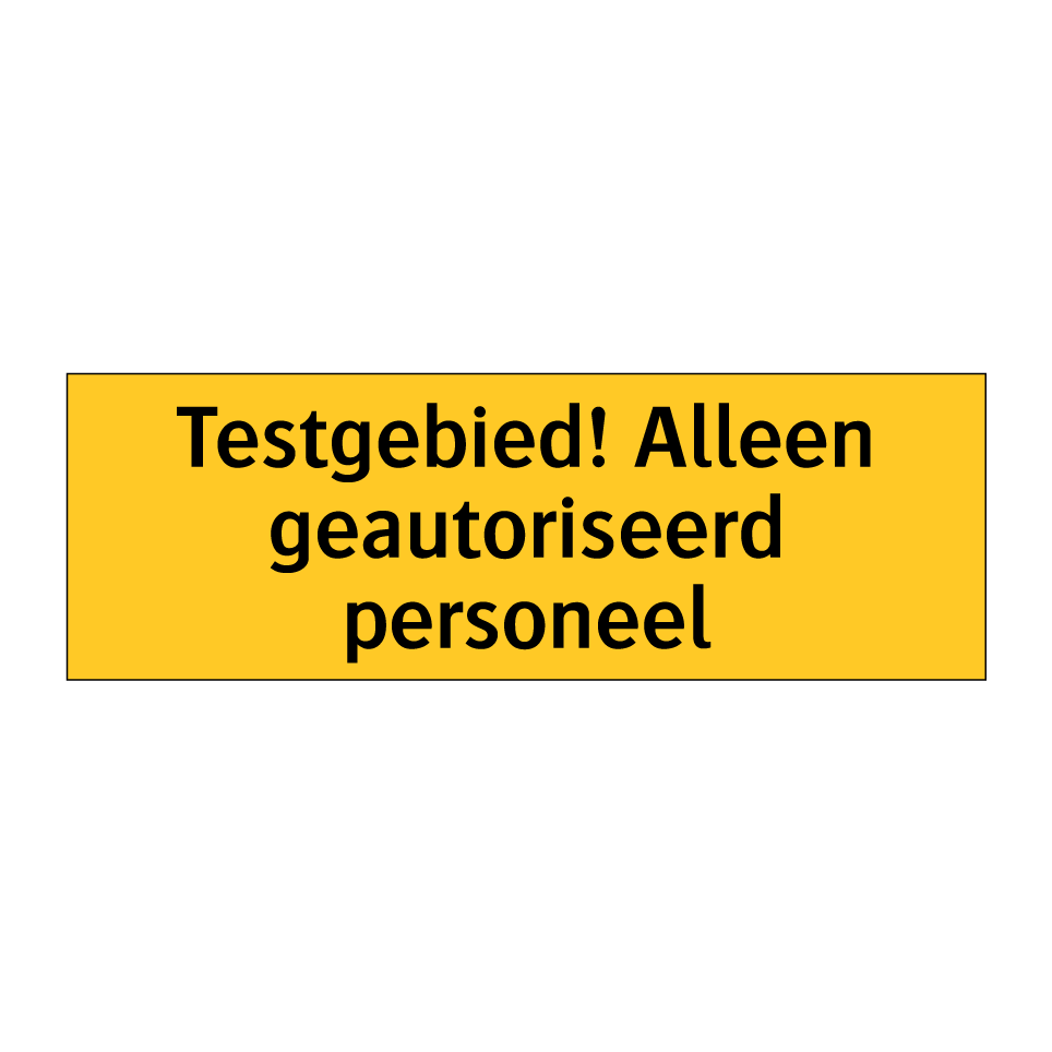 Waarschuwingsbord met de tekst Testgebied! Alleen geautoriseerd personeel