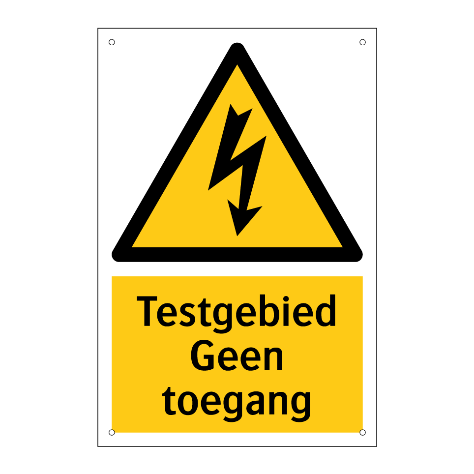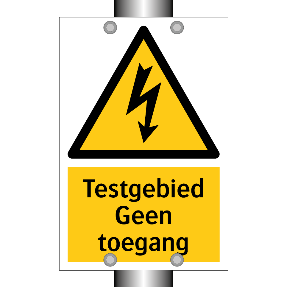 Waarschuwingsbord met de tekst Testgebied Geen toegang