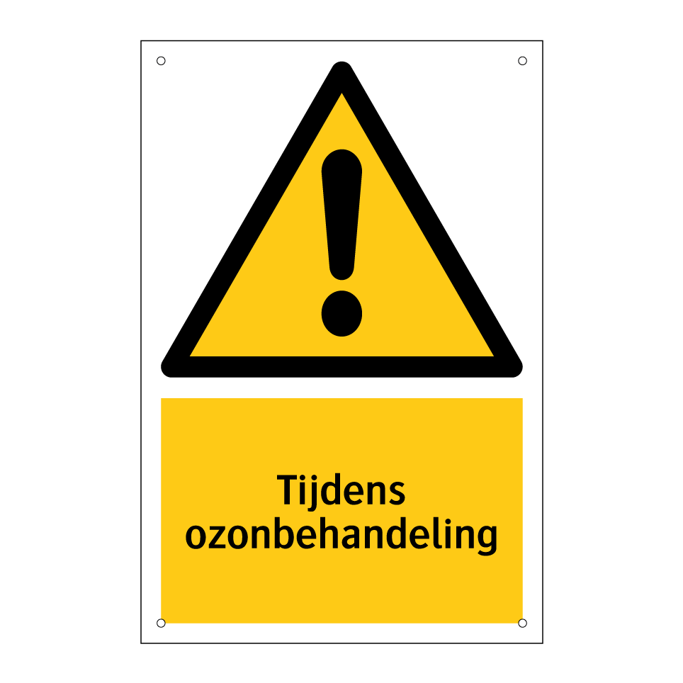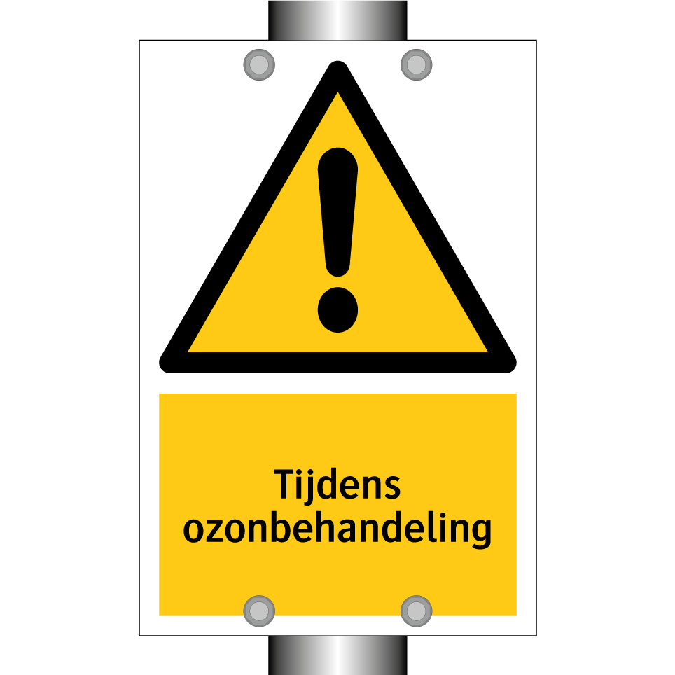 Waarschuwingsbord met de tekst Tijdens ozonbehandeling